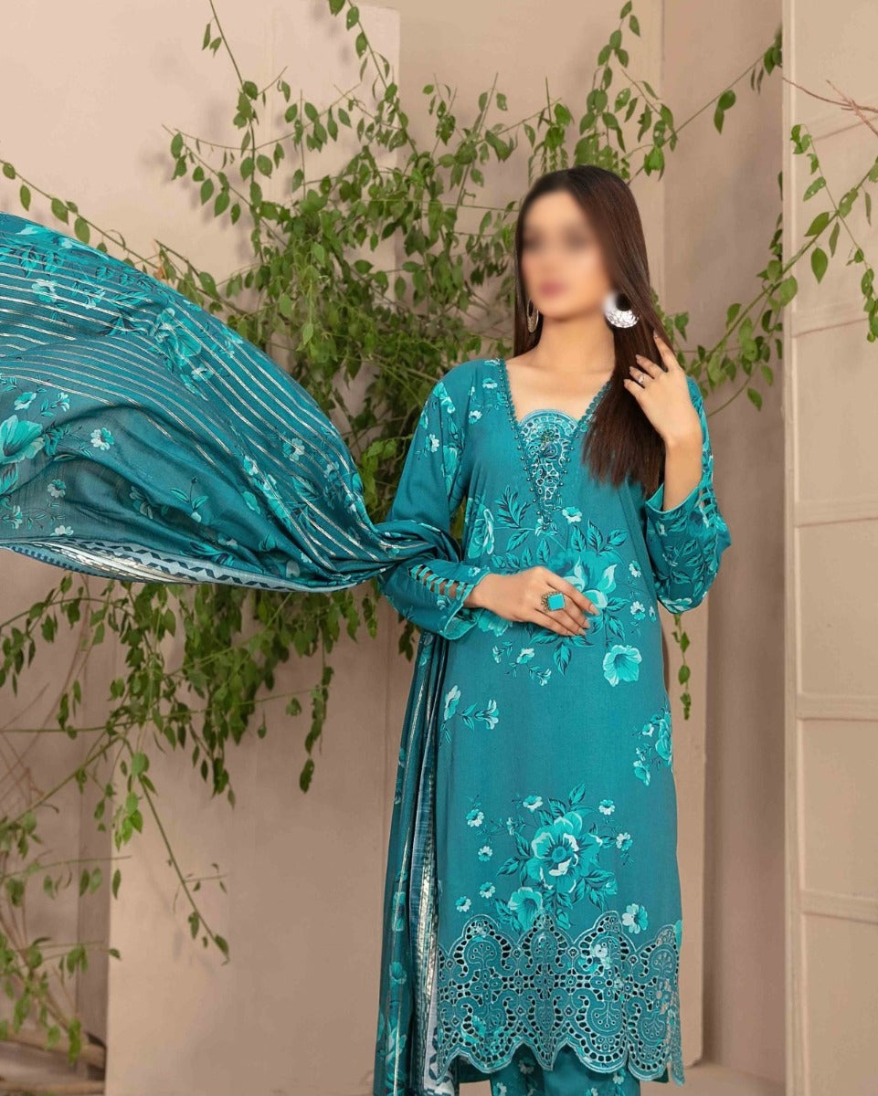 D 9718 - ELEA Schiffli Embroidered Digital Printed
