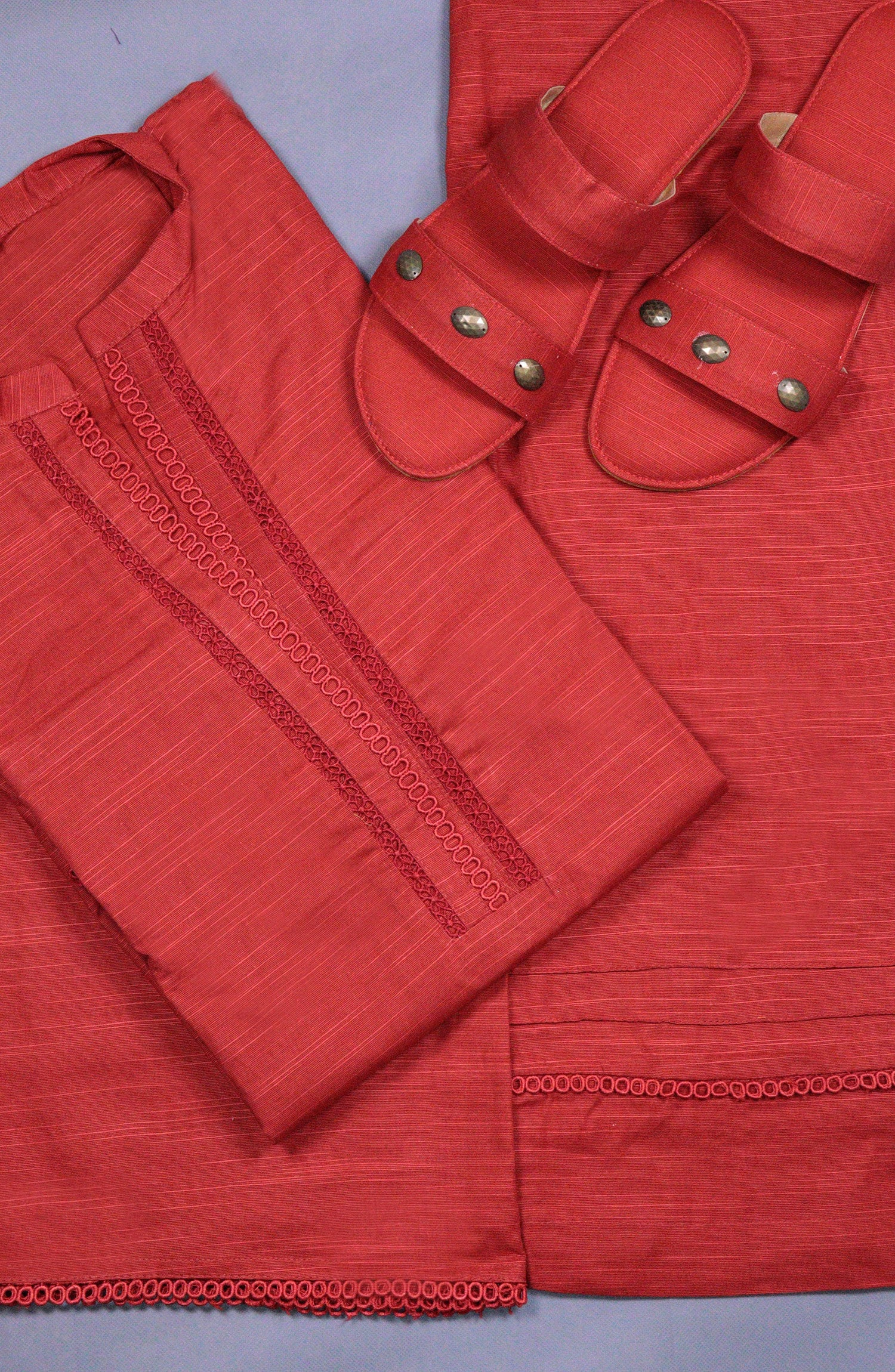 2 Piece Stitched Khaddar Suit with Matching Flip Flop.