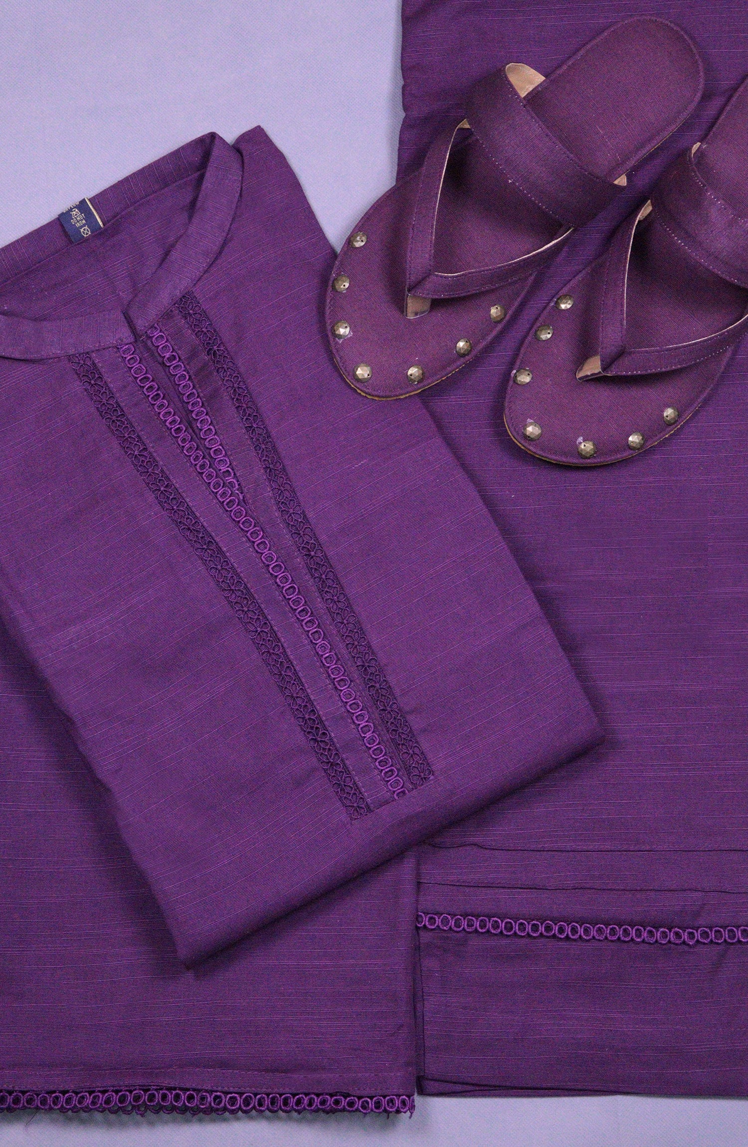 2 Piece Stitched Khaddar Suit with Matching Flip Flop.