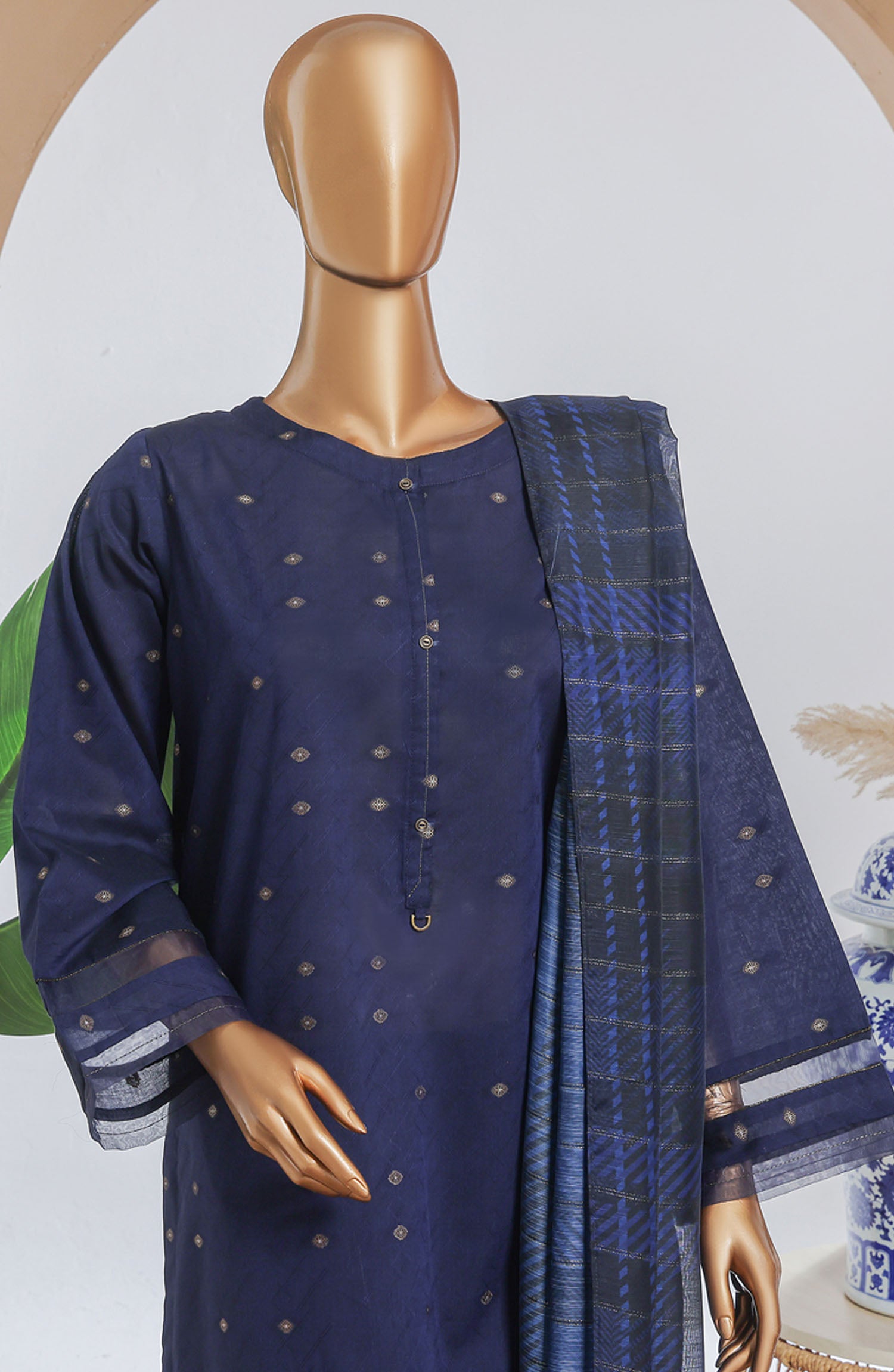 Home Damask by HZ Textile Printed Lawn Stitched 3 Piece Suit - DBJ-3P-041 Midnight Blue - HZ25DBJ - Summer Collection