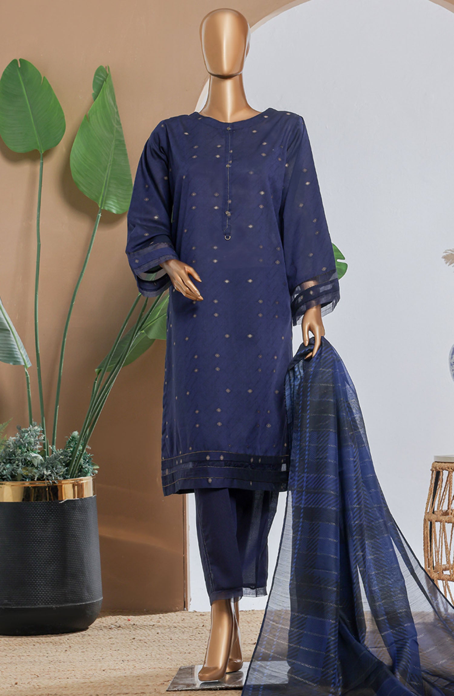 Damask by HZ Textile Printed Lawn Stitched 3 Piece Suit - DBJ-3P-041 Midnight Blue - HZ25DBJ - Summer Collection