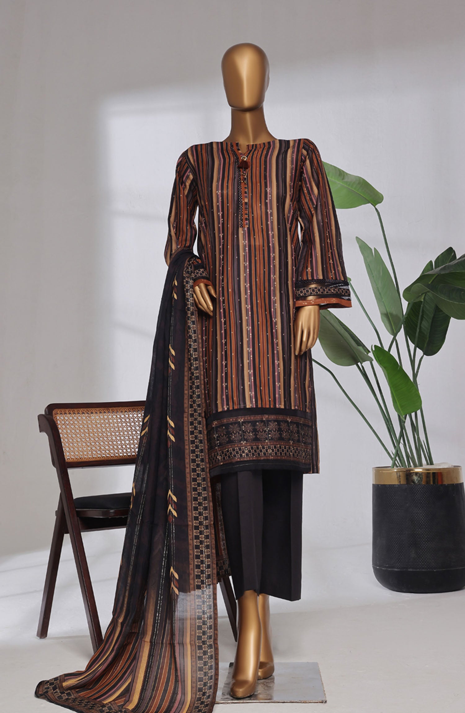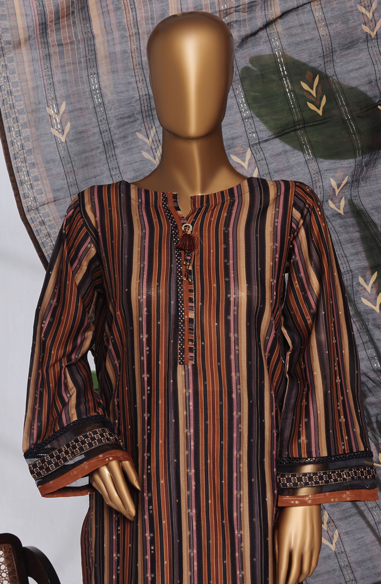 Home Damask Prints by HZ Textile Digital Printed Lawn Jacquard Pret 3 Piece Suit - HZ25DMP - DPJ-3P-036 - Rust Multi - Lawn Collection