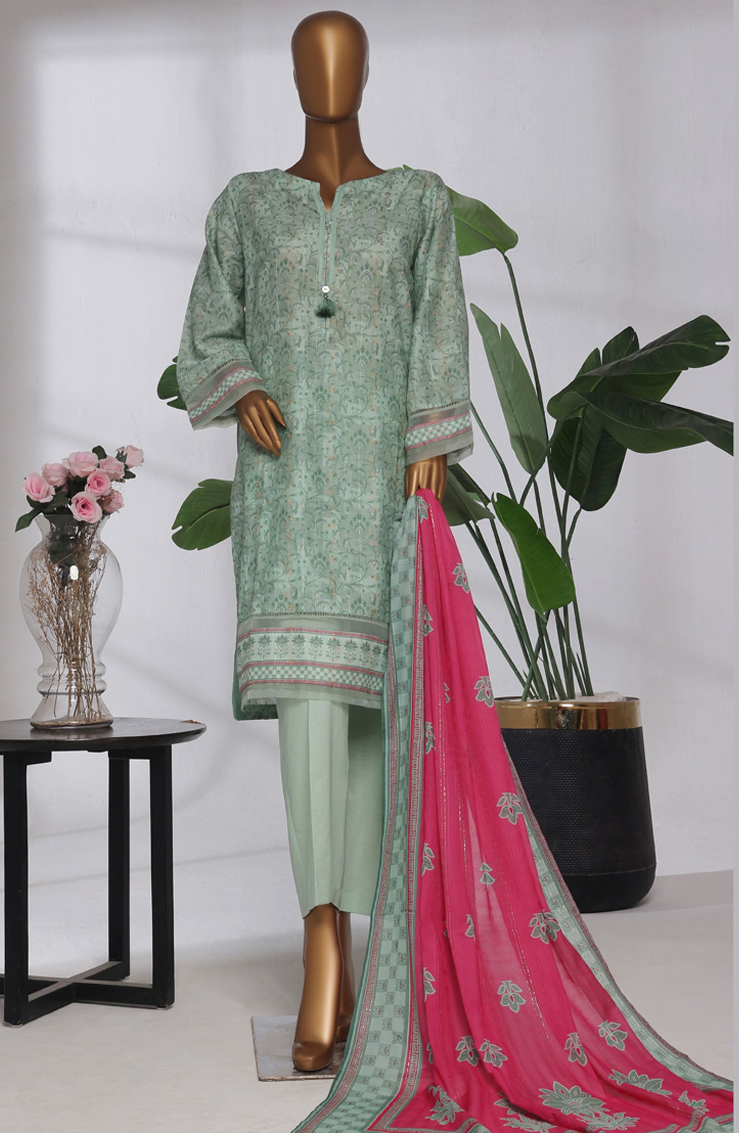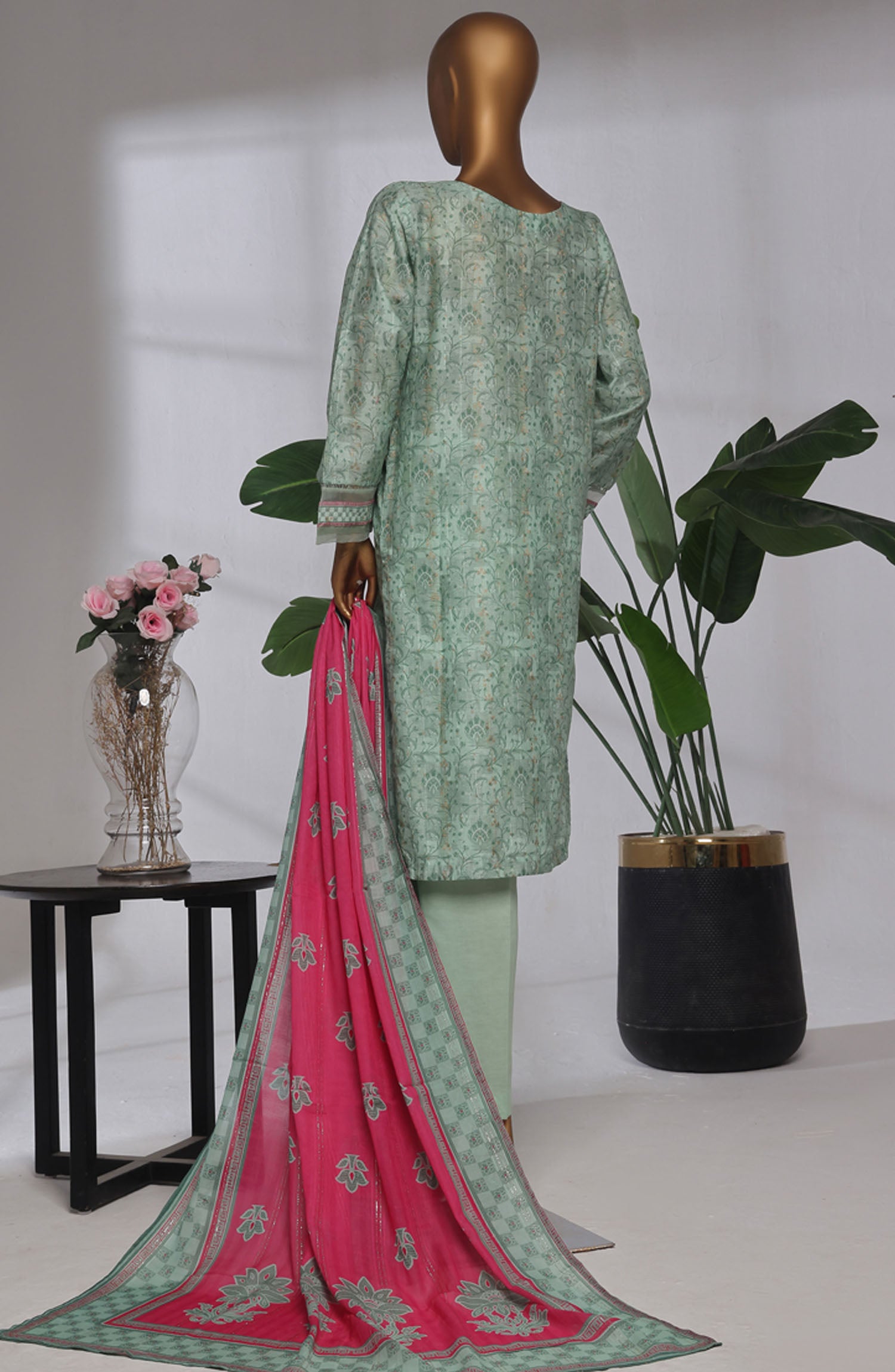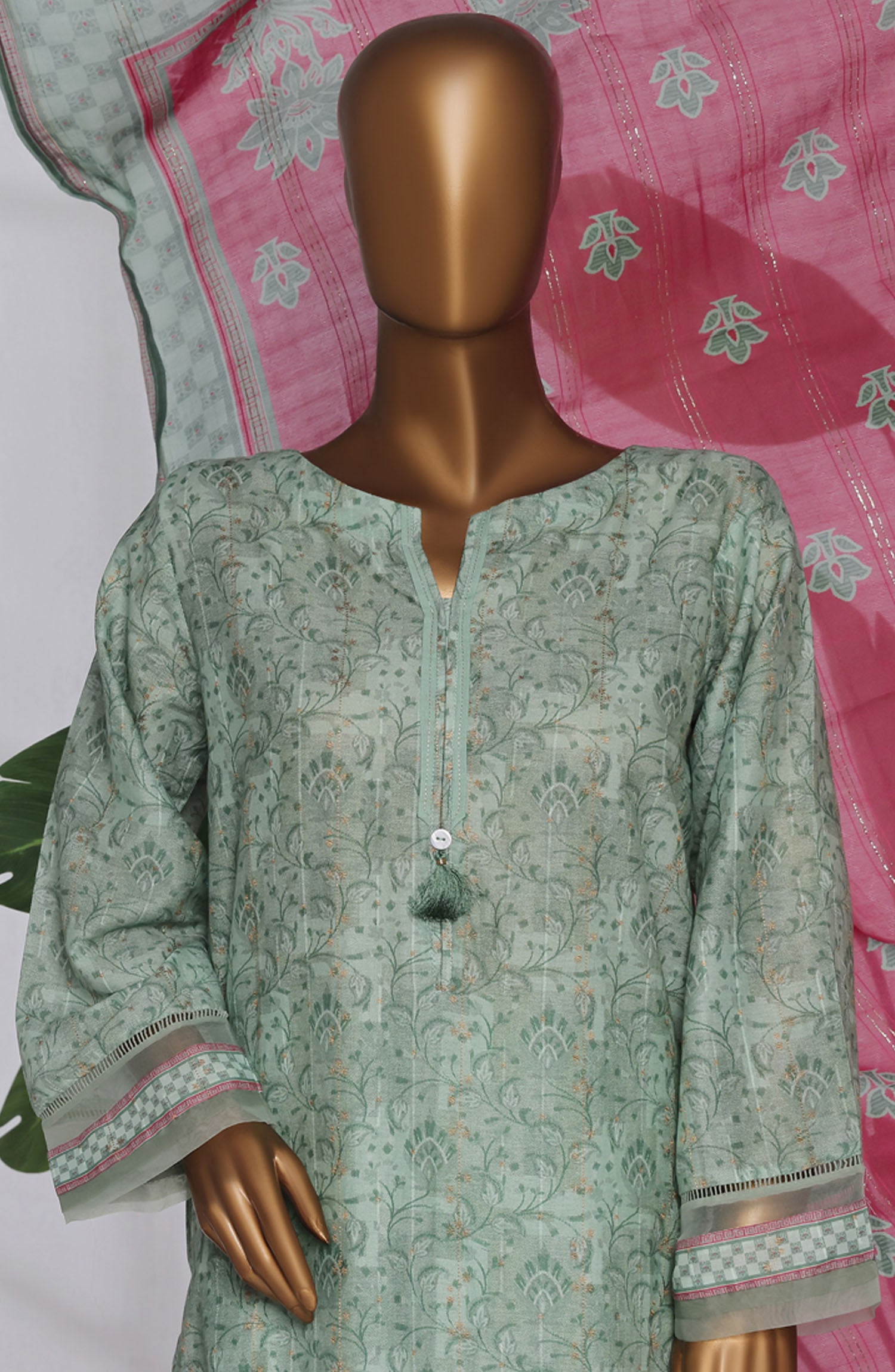 Damask Prints by HZ Textile Digital Printed Lawn Jacquard Pret 3 Piece Suit - HZ25DMP - DPJ-3P-037 - Pastel Green - Lawn Collection