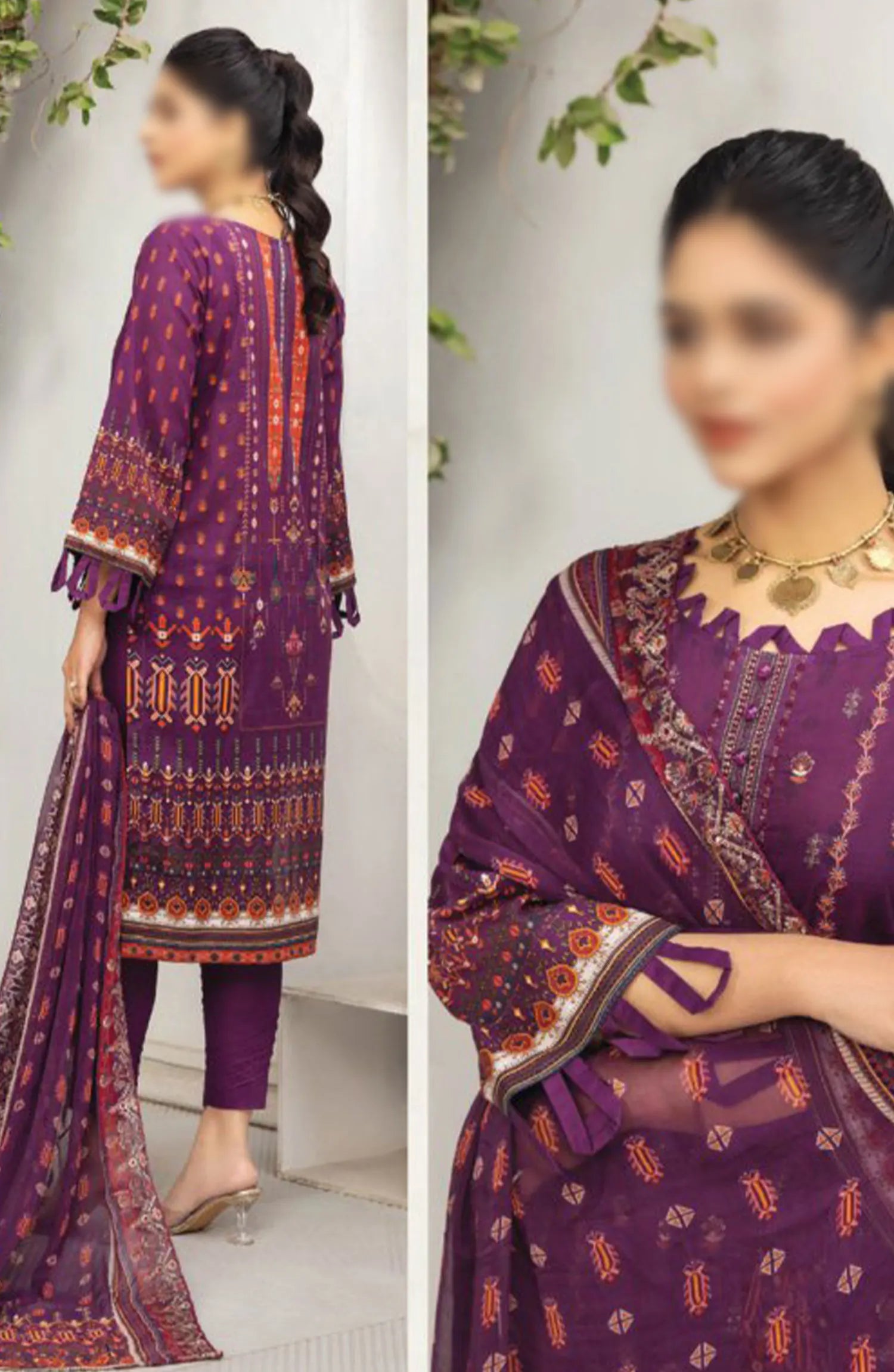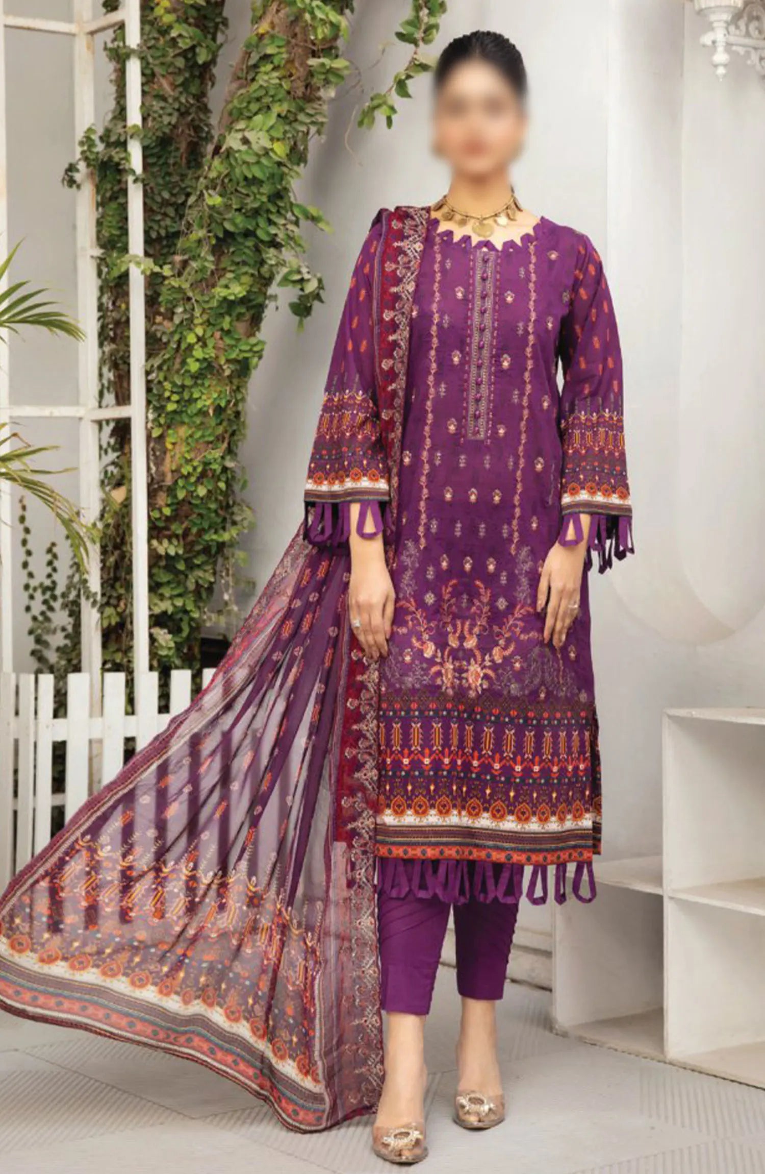 Dastaan Embroidered Print Lawn Collection 2024 By Humdum has been styled in the image for photography and illustrative purposes.