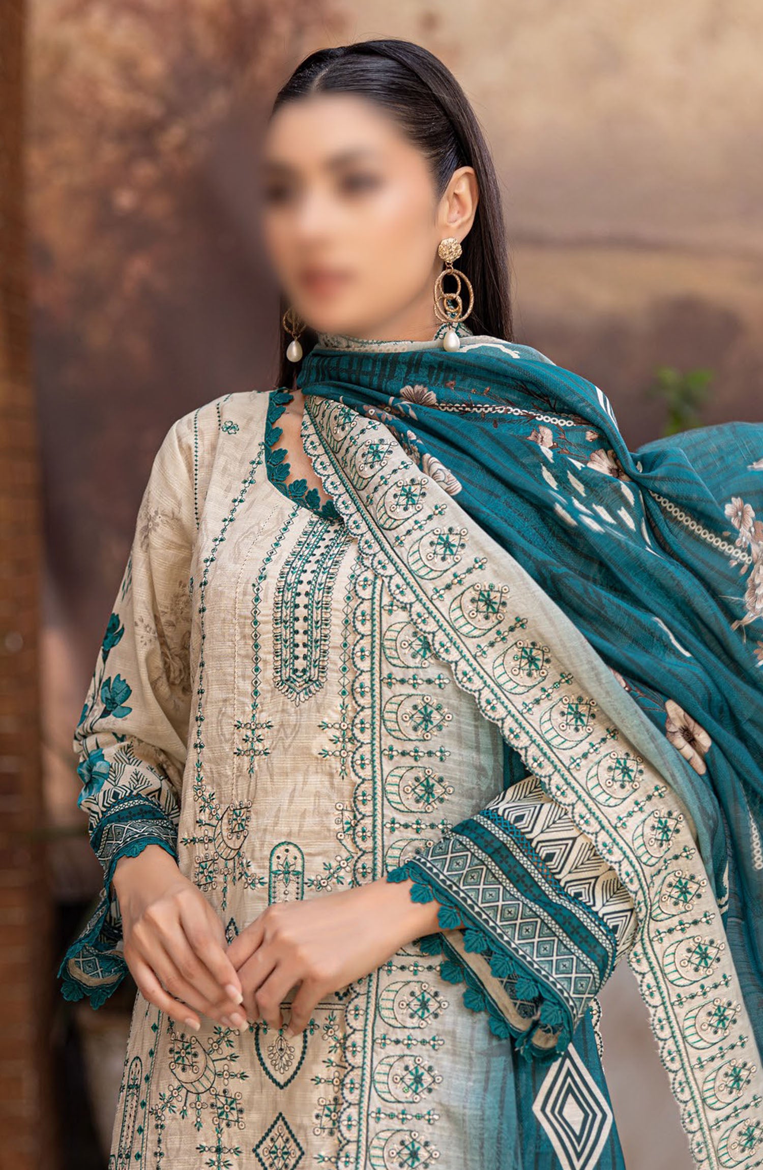 Sadabahar Signature Embroidered Khaddar Stitched 3 Piece Suit - Design-04 - SBD25SNA - Teal - Winter Collection