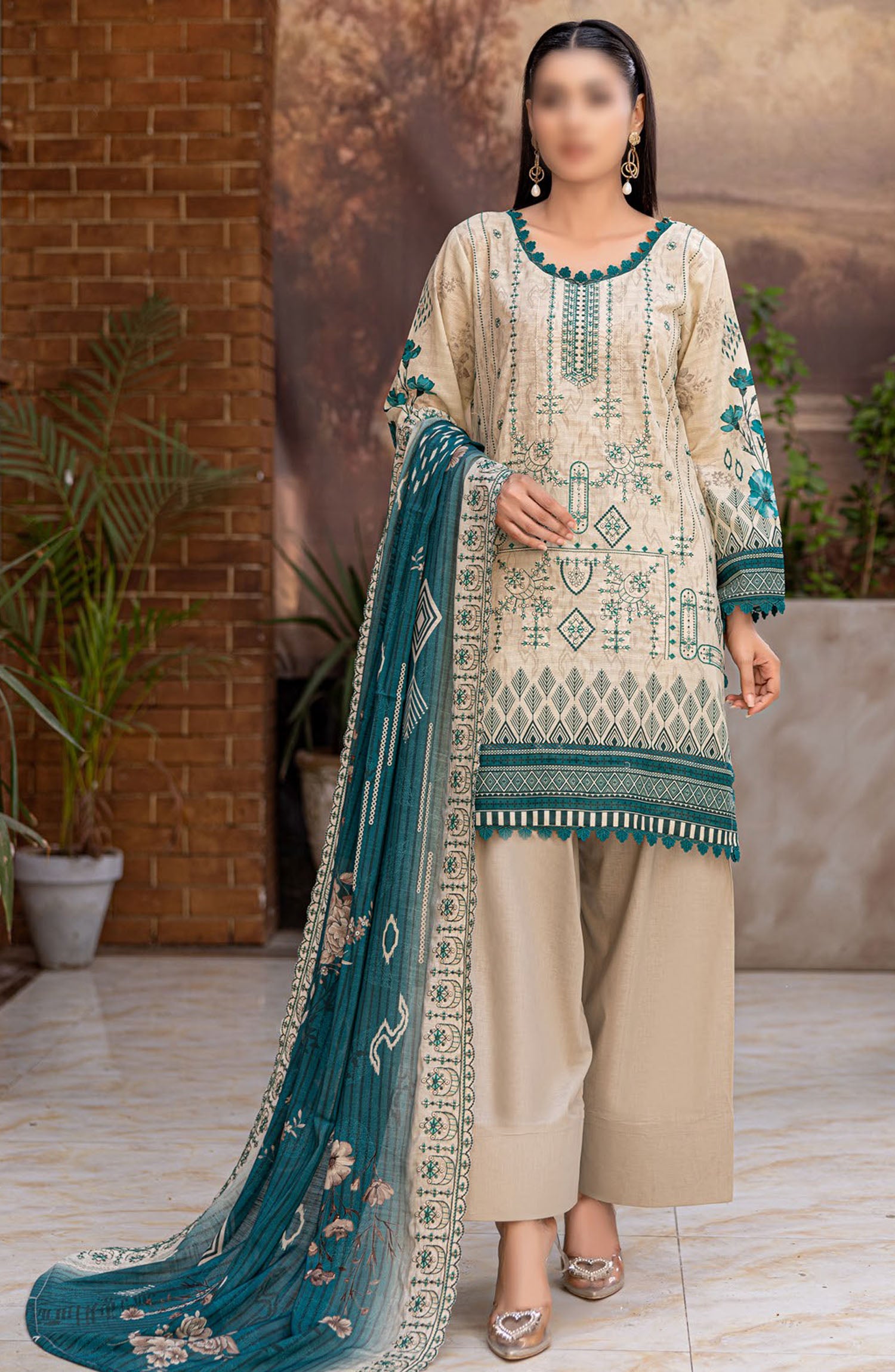 Home Dastak by Al Karim Embroidered Lawn Unstitched 3 Piece Suit - D-01 - ALK25DEL - Beige - Summer Collection