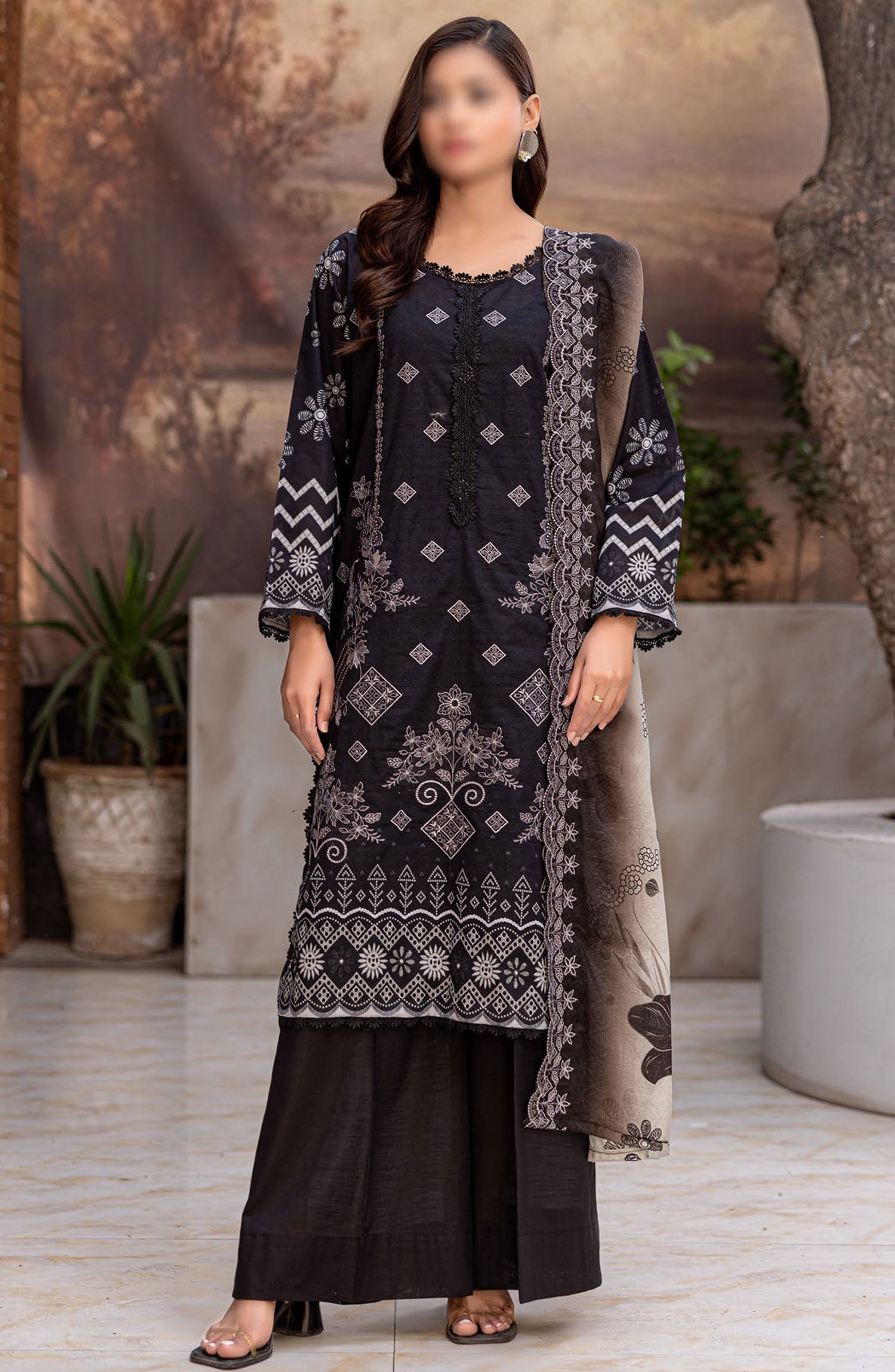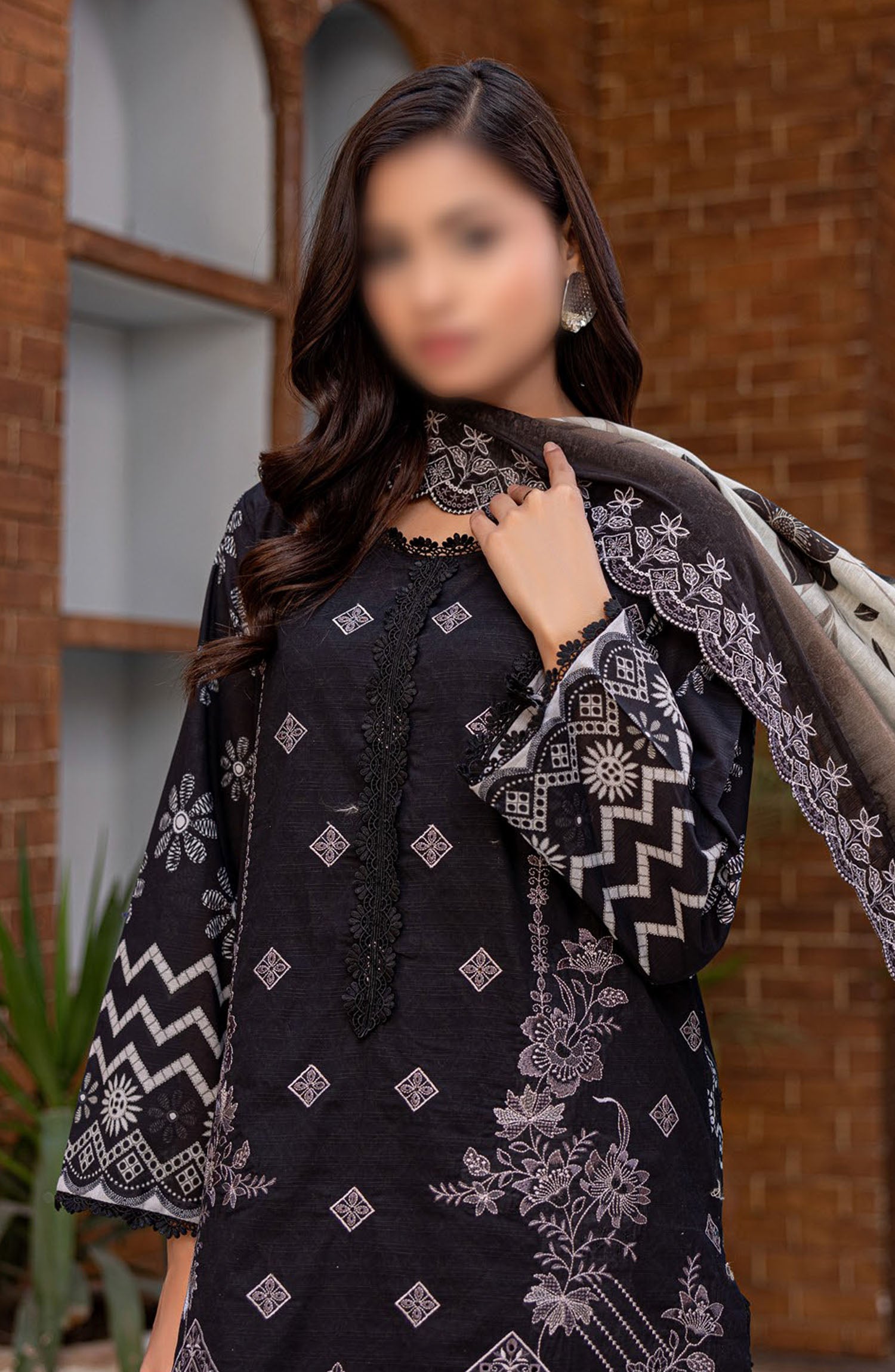 Home Dastak by Al Karim Embroidered Lawn Unstitched 3 Piece Suit - D-02 - ALK25DEL - Black - Summer Collection