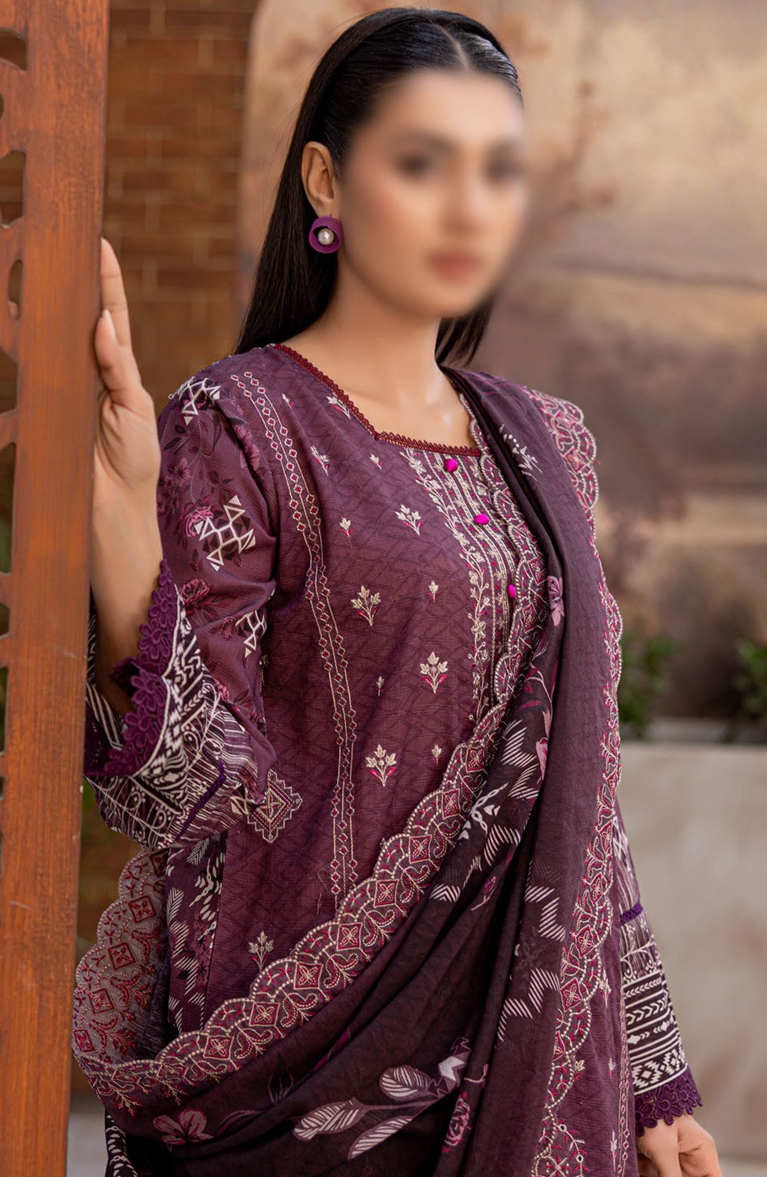 Sadabahar Signature Embroidered Khaddar Stitched 3 Piece Suit - Design-05 - SBD25SNA - Maroon - Winter Collection