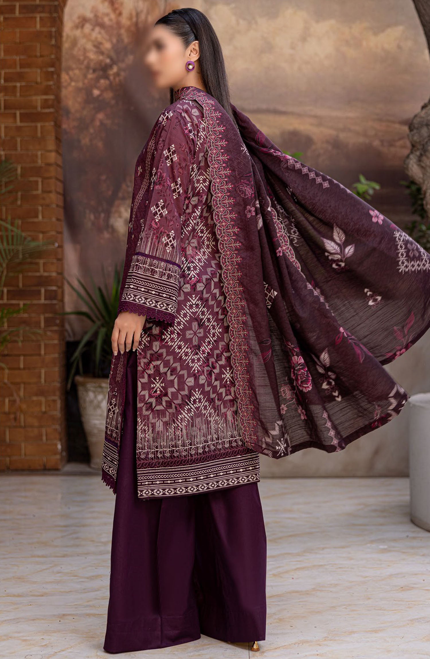 Home Dastak by Al Karim Embroidered Lawn Unstitched 3 Piece Suit - D-03 - ALK25DEL - Purple - Summer Collection