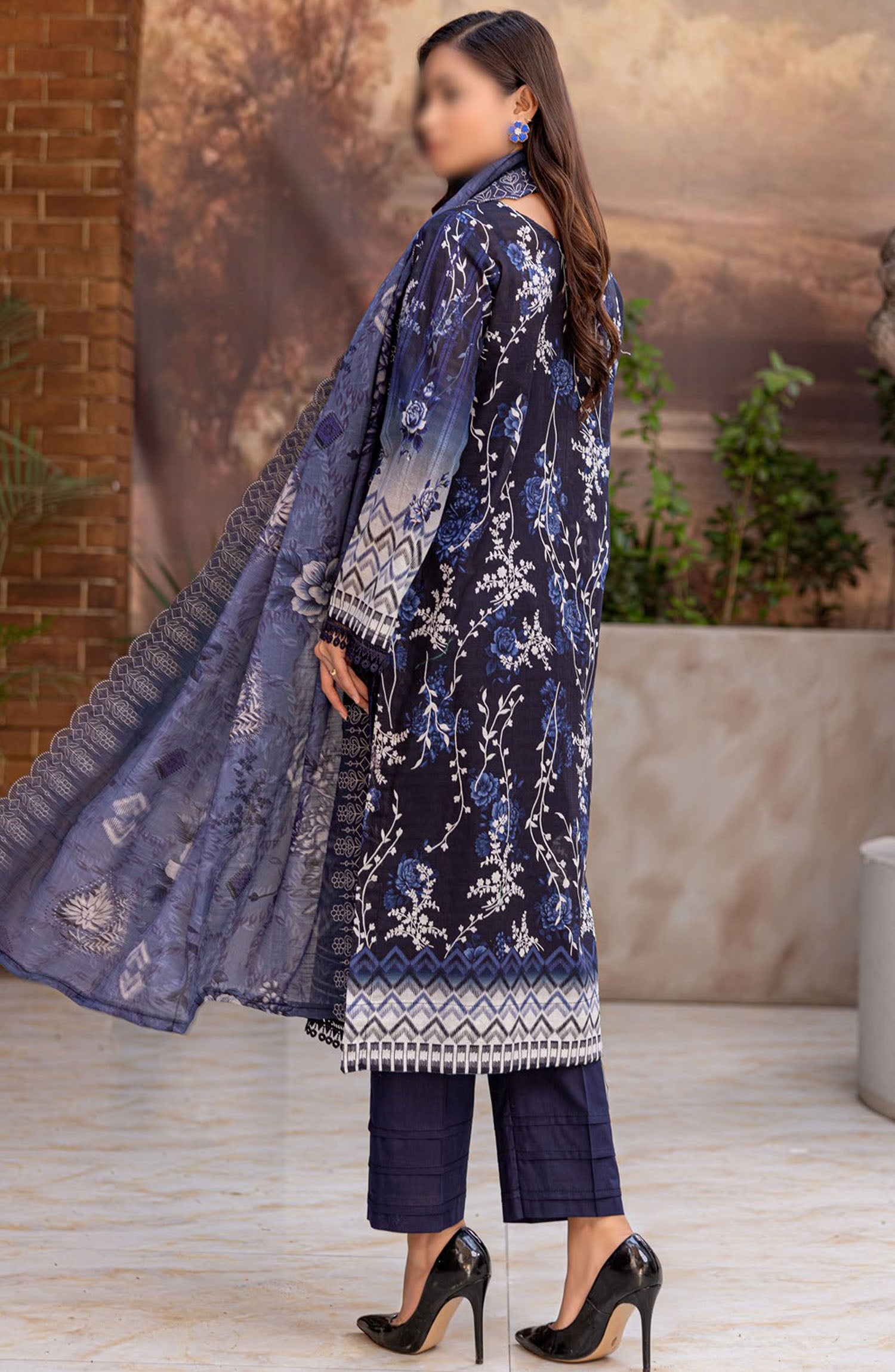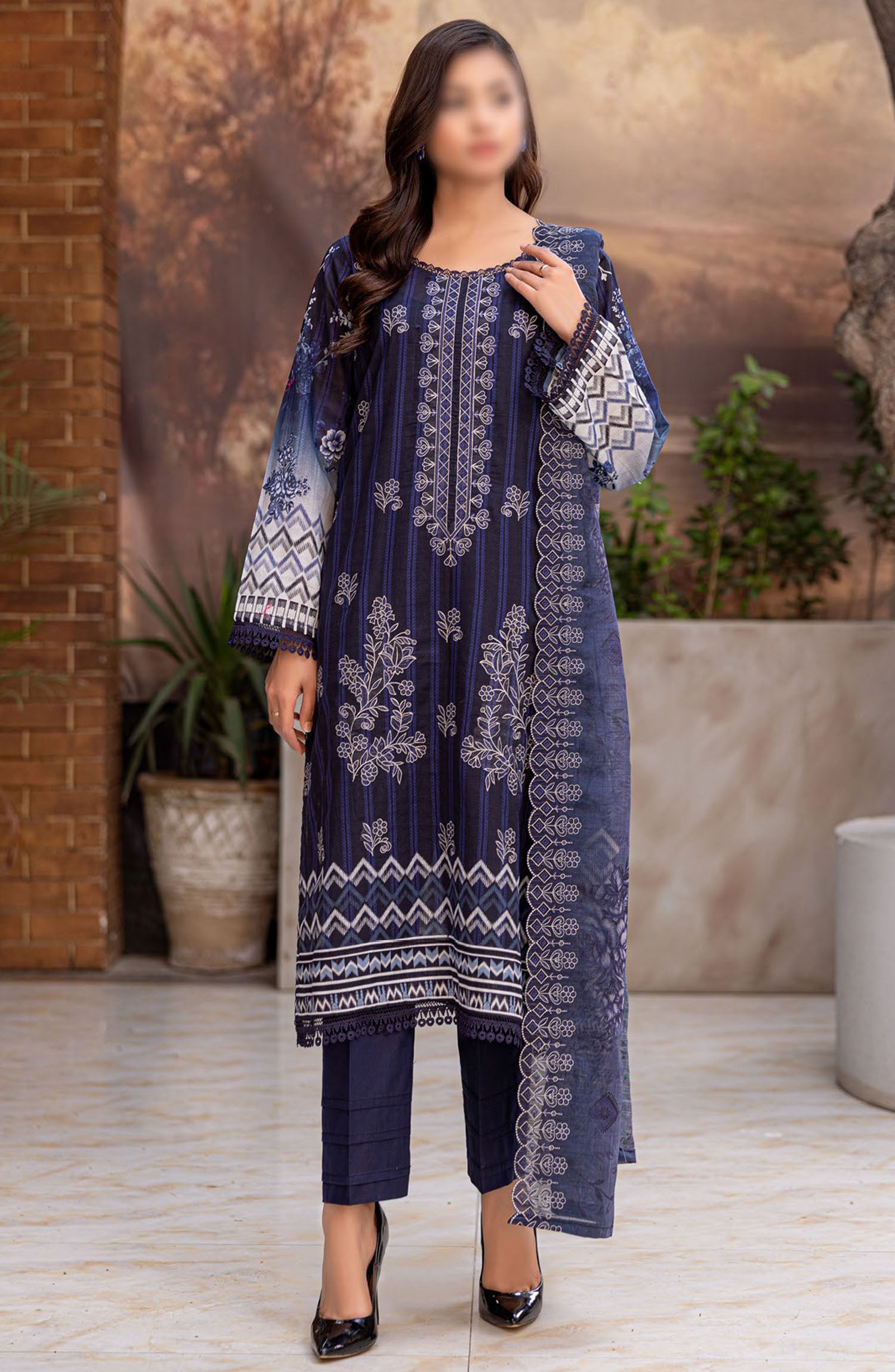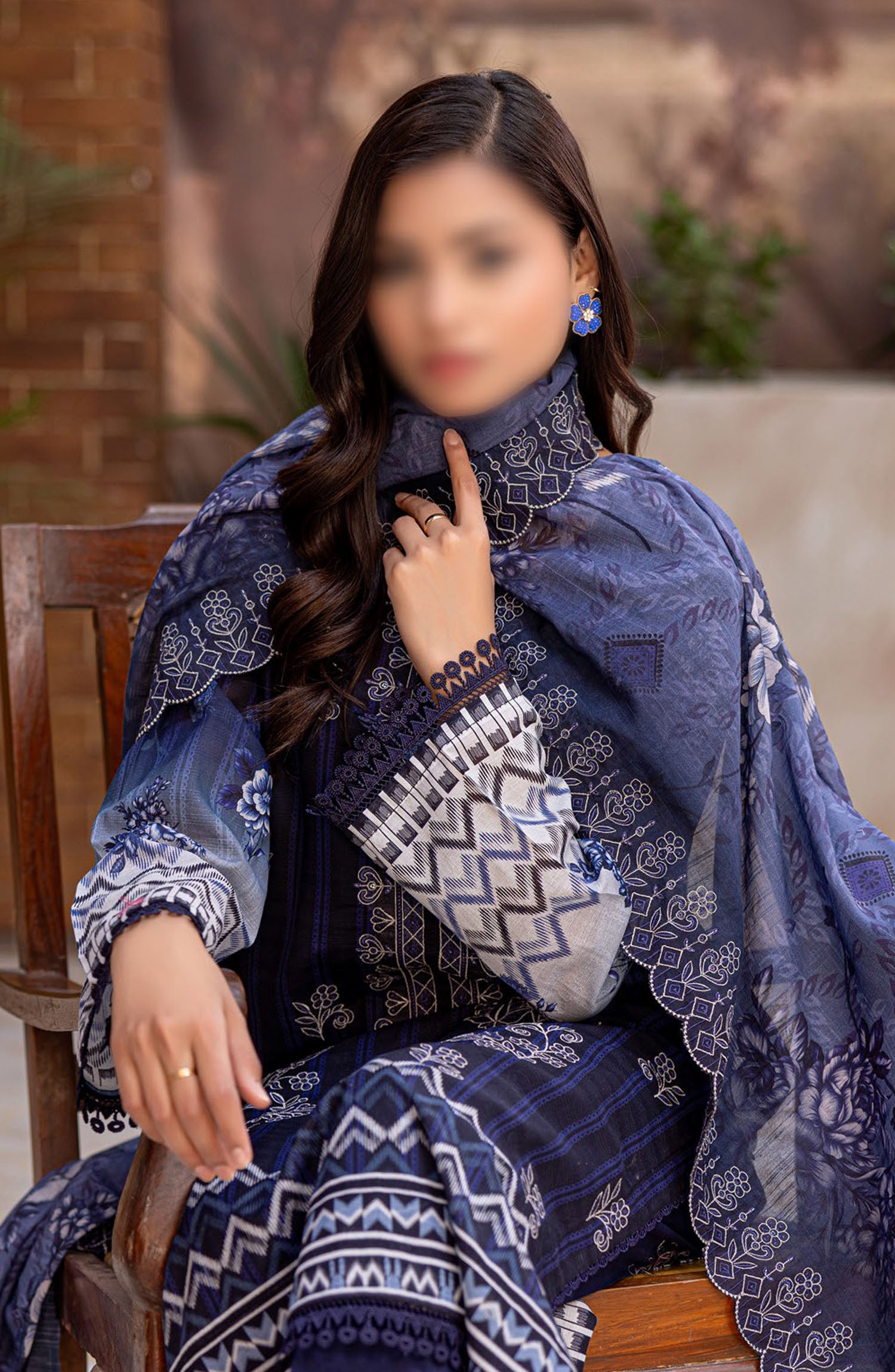 Home Dastak by Al Karim Embroidered Lawn Unstitched 3 Piece Suit - D-04 - ALK25DEL - Blue - Summer Collection