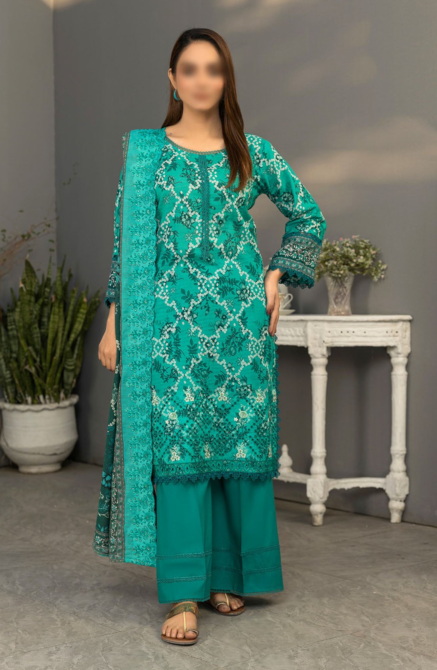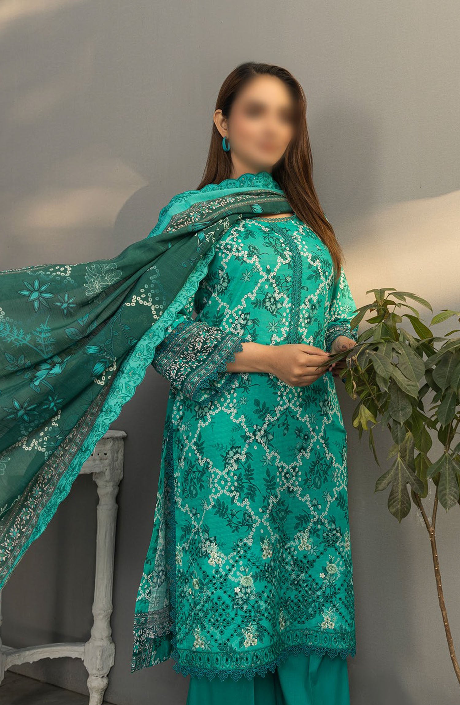 Home Dastak by Al Karim Embroidered Lawn Unstitched 3 Piece Suit - D-06 - ALK25DV1 - Sea Green - Summer Collection