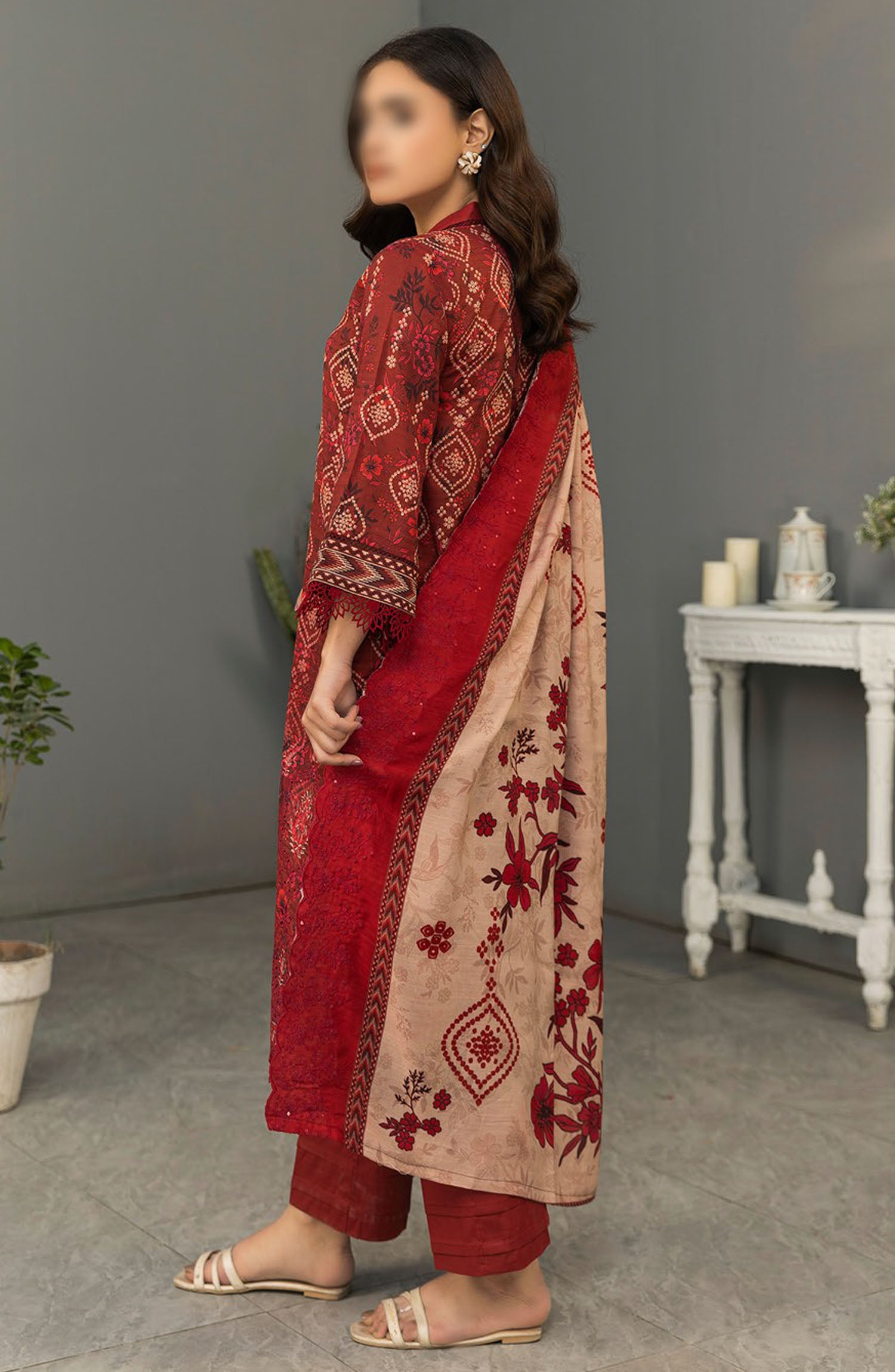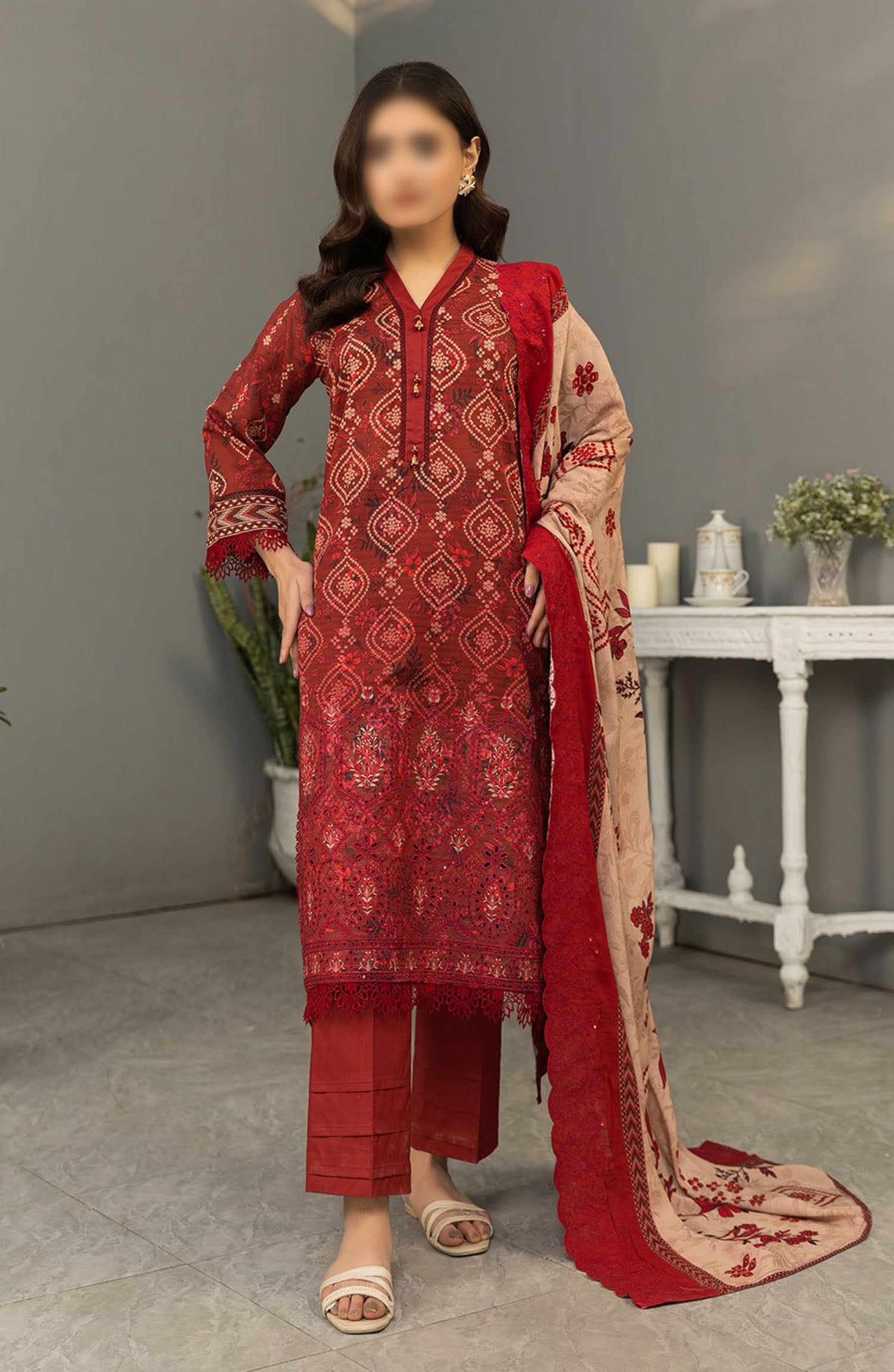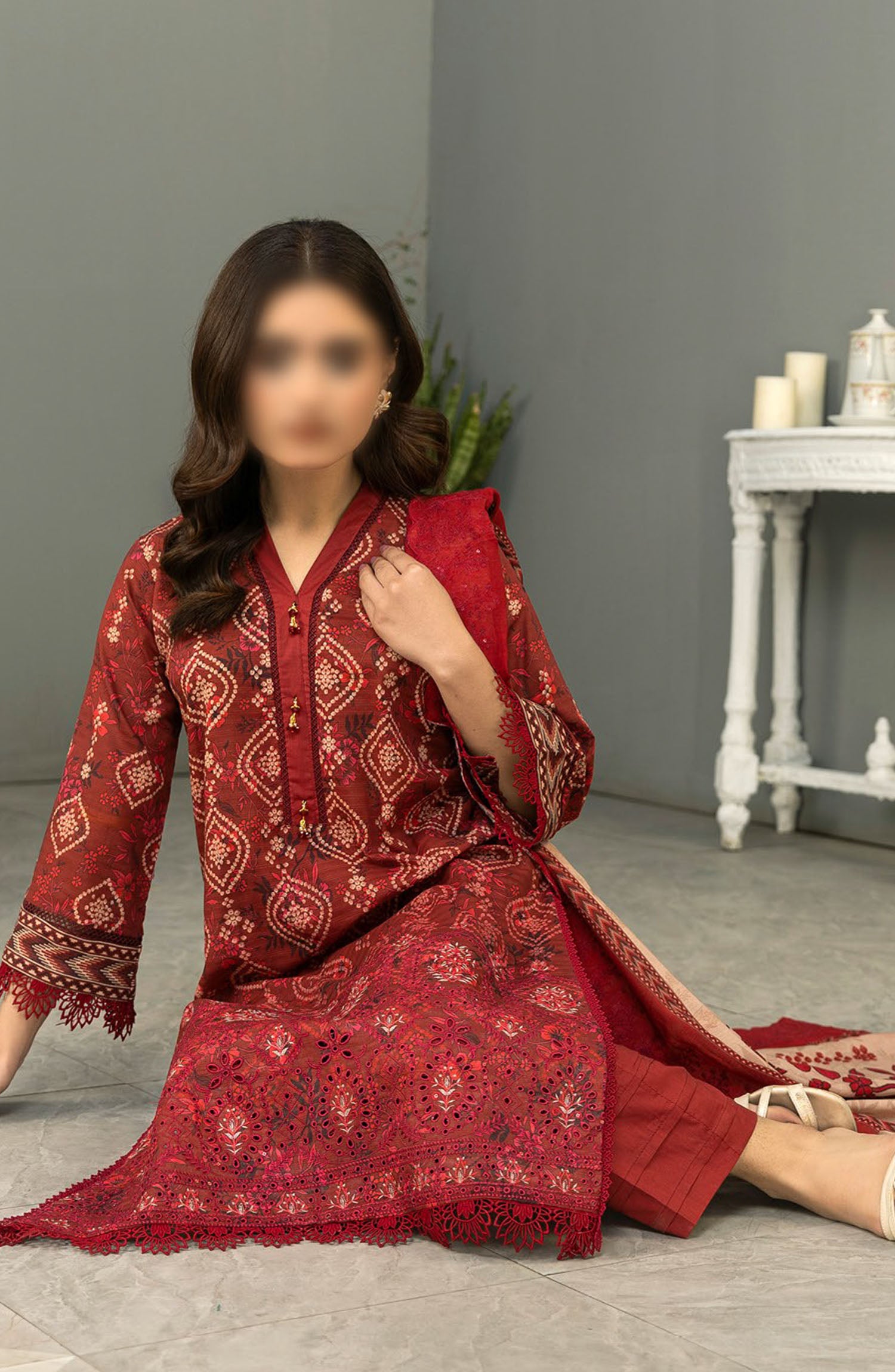Home Dastak by Al Karim Embroidered Lawn Unstitched 3 Piece Suit - D-07 - ALK25DV1 - Red - Summer Collection