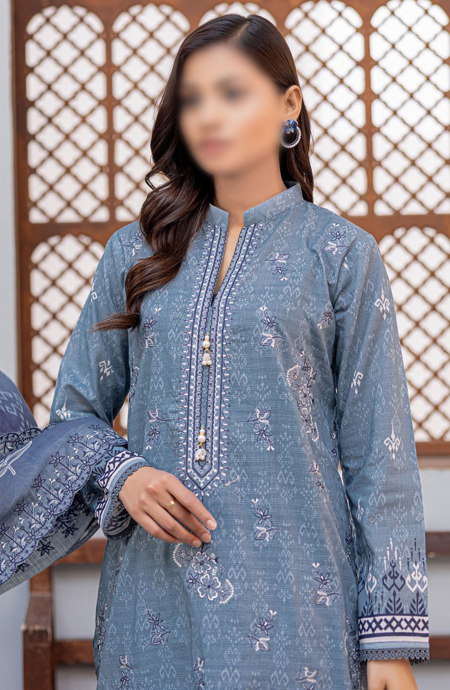 Sadabahar Signature Embroidered Khaddar Stitched 3 Piece Suit - Design-03 - SBD25SNA - Blue - Winter Collection