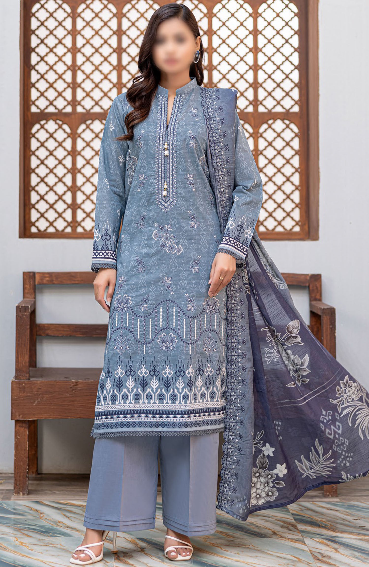 Home Dastak by Al Karim Embroidered Lawn Unstitched 3 Piece Suit - D-08 - ALK25DEL - Blue - Summer Collection