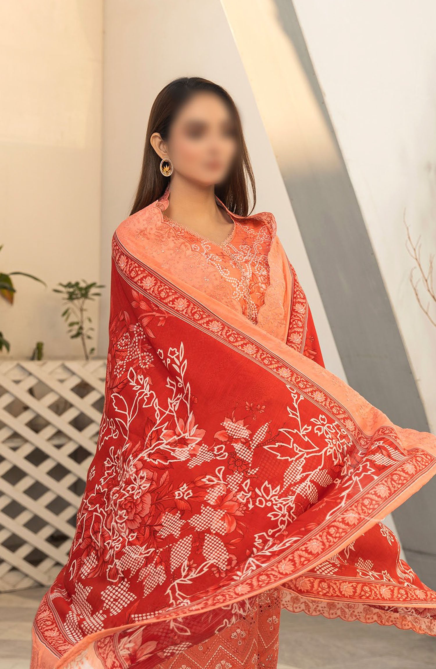 Home Dastak by Al Karim Embroidered Lawn Unstitched 3 Piece Suit - D-08 - ALK25DV1 - Peach - Summer Collection