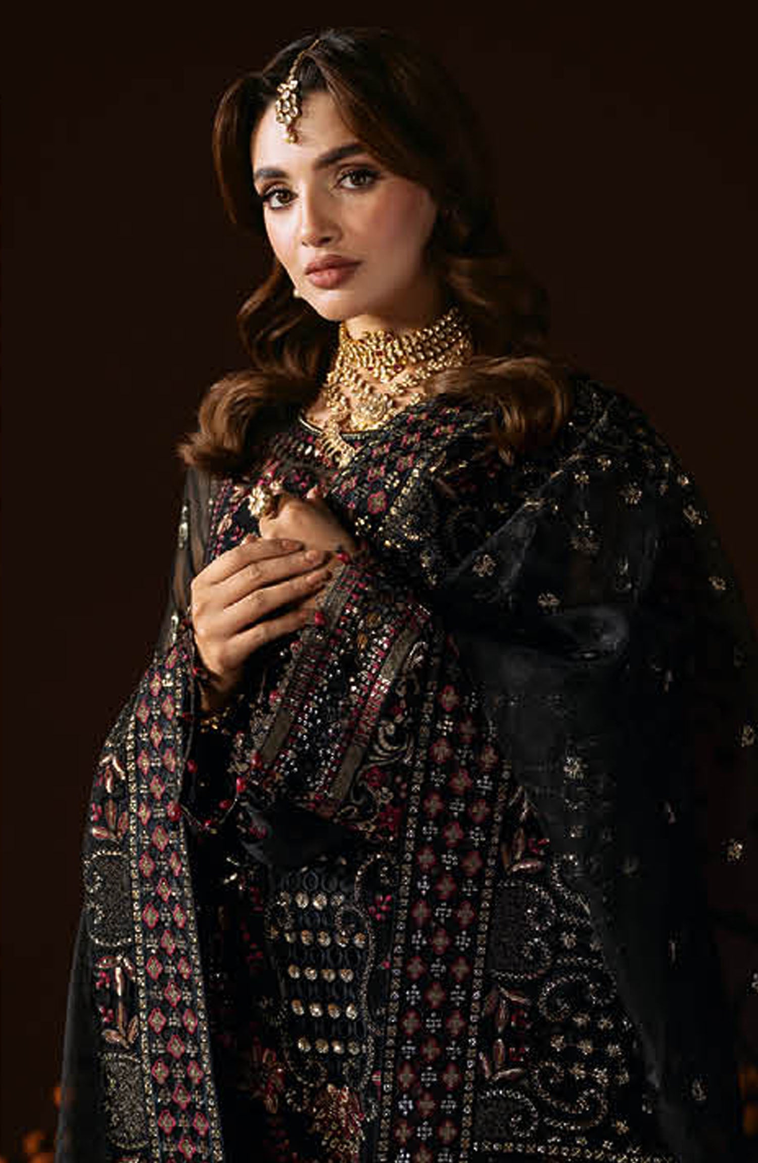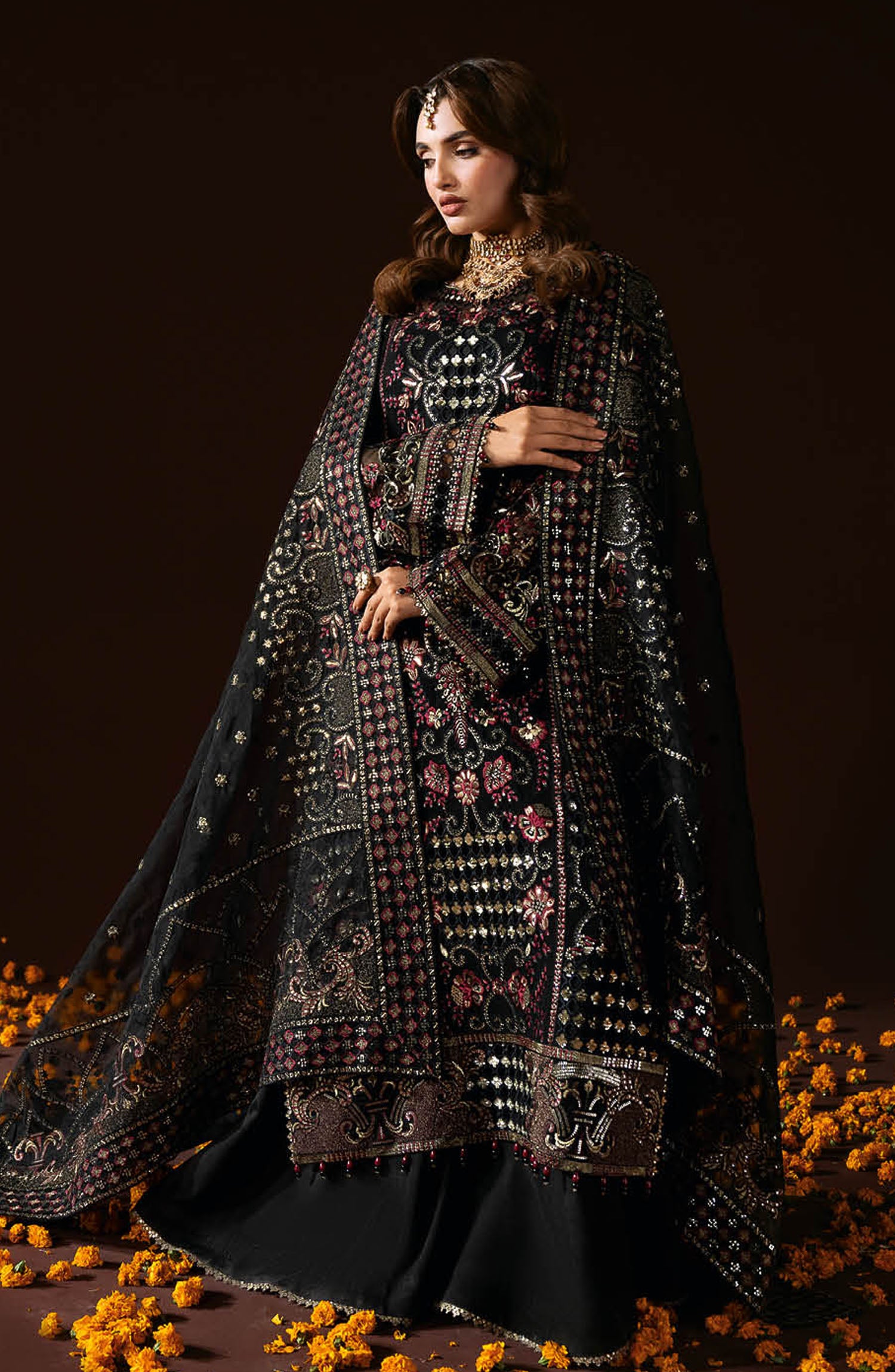 Threads N Weaves Embroidered Dhanak Unstitched 3 Piece Suit - D25102 - TNW25WD - Black - Winter Collection