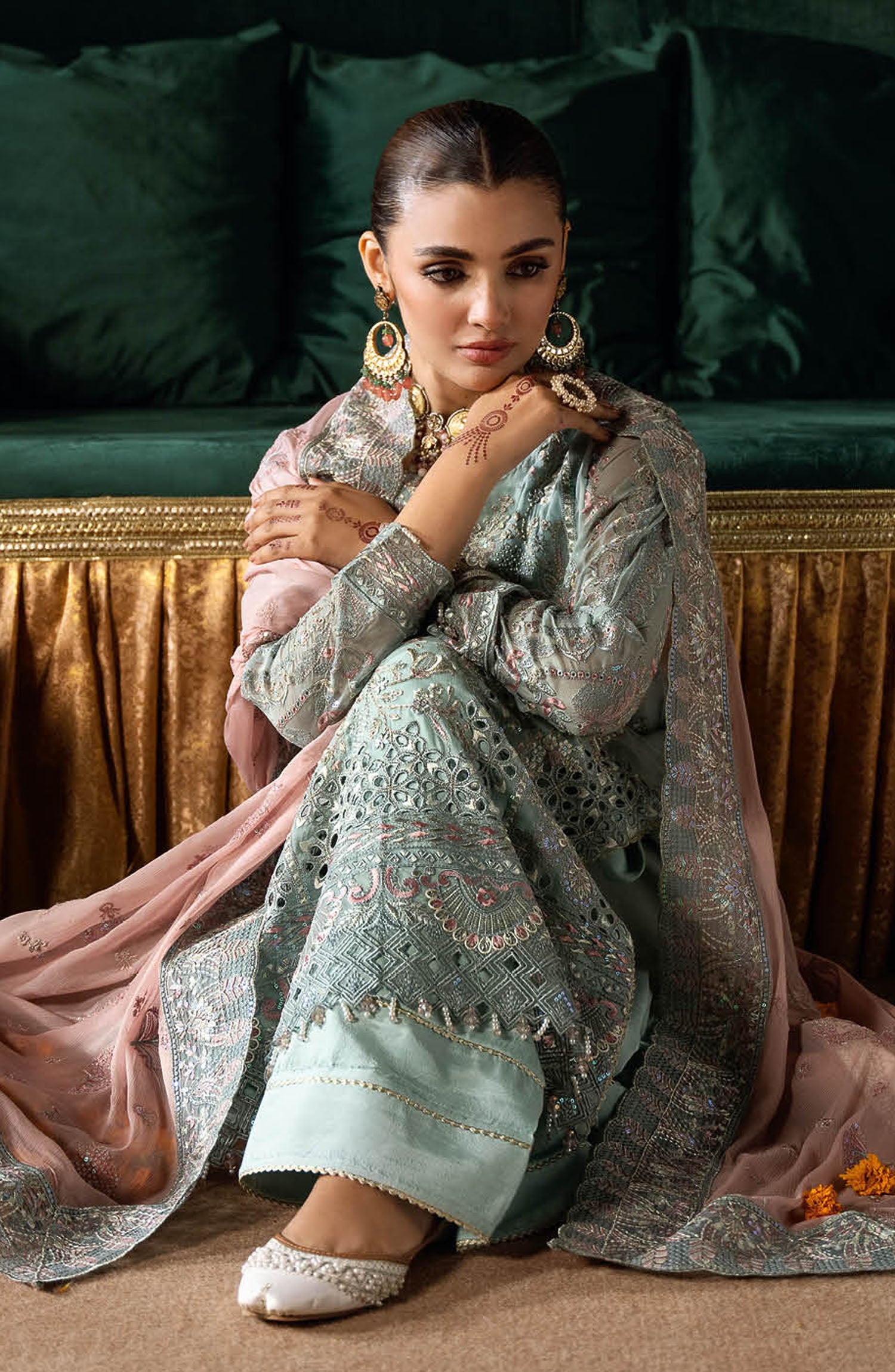 The standard style comes as a long-sleeved kameez with dupatta and trouser/shawlar.