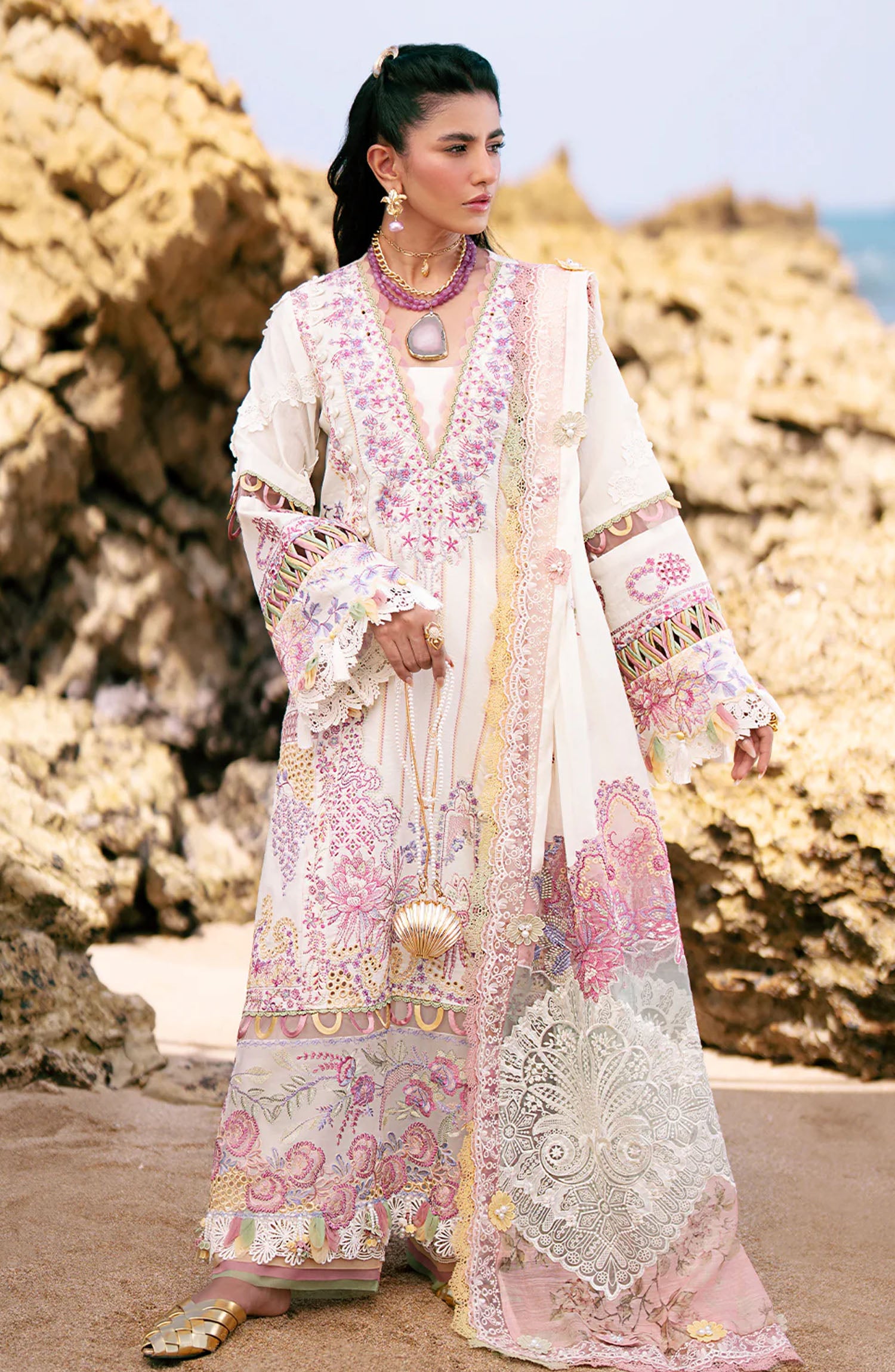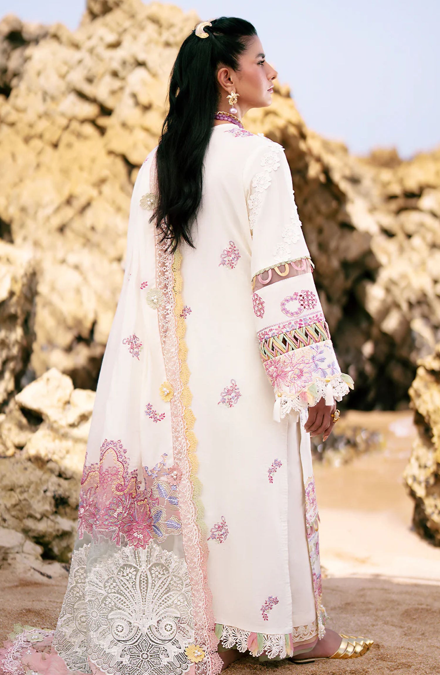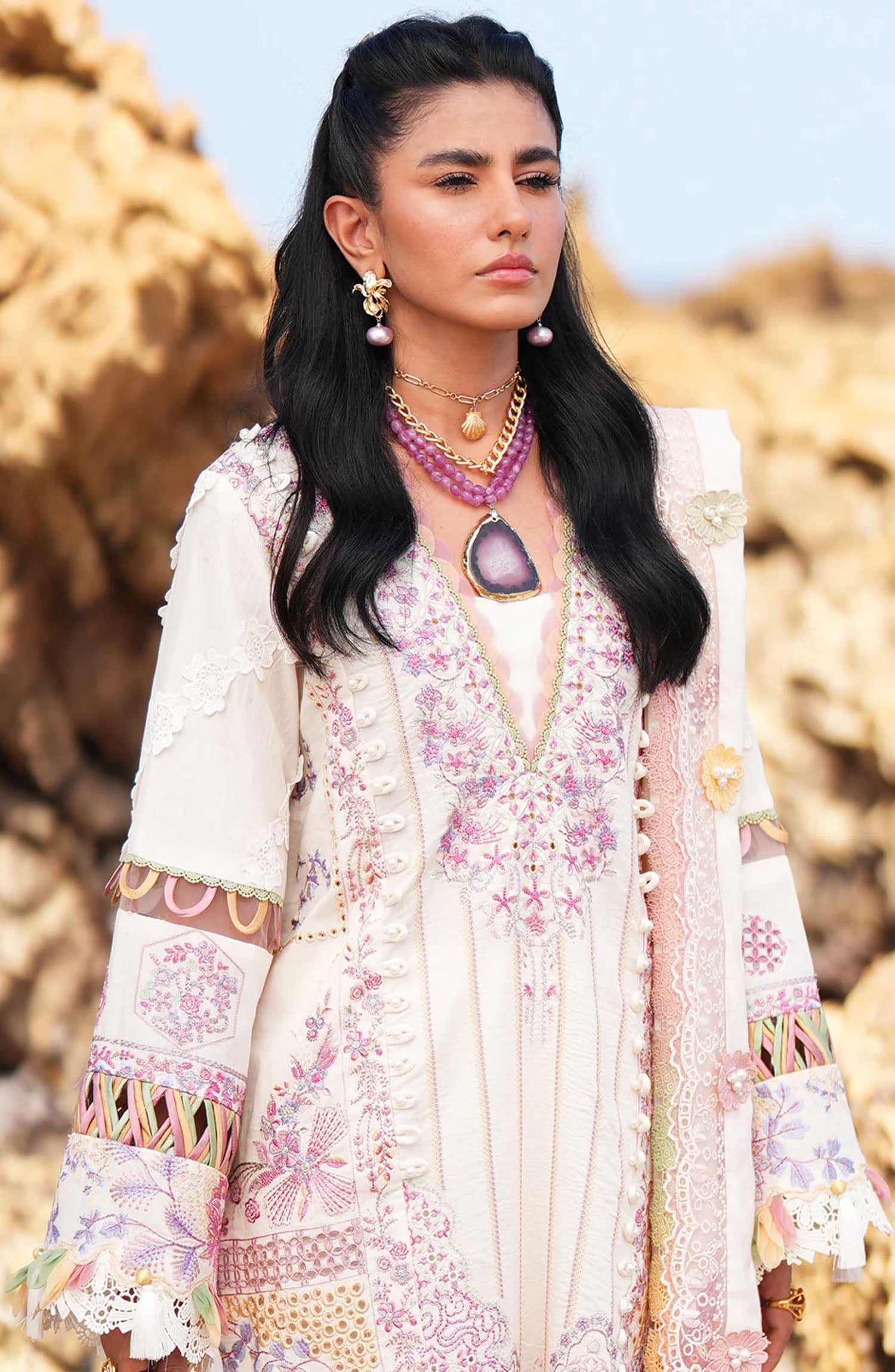 Dastoor by AJR Couture Luxury Lawn Collection 2025 has been styled in the image for photography and illustrative purposes.