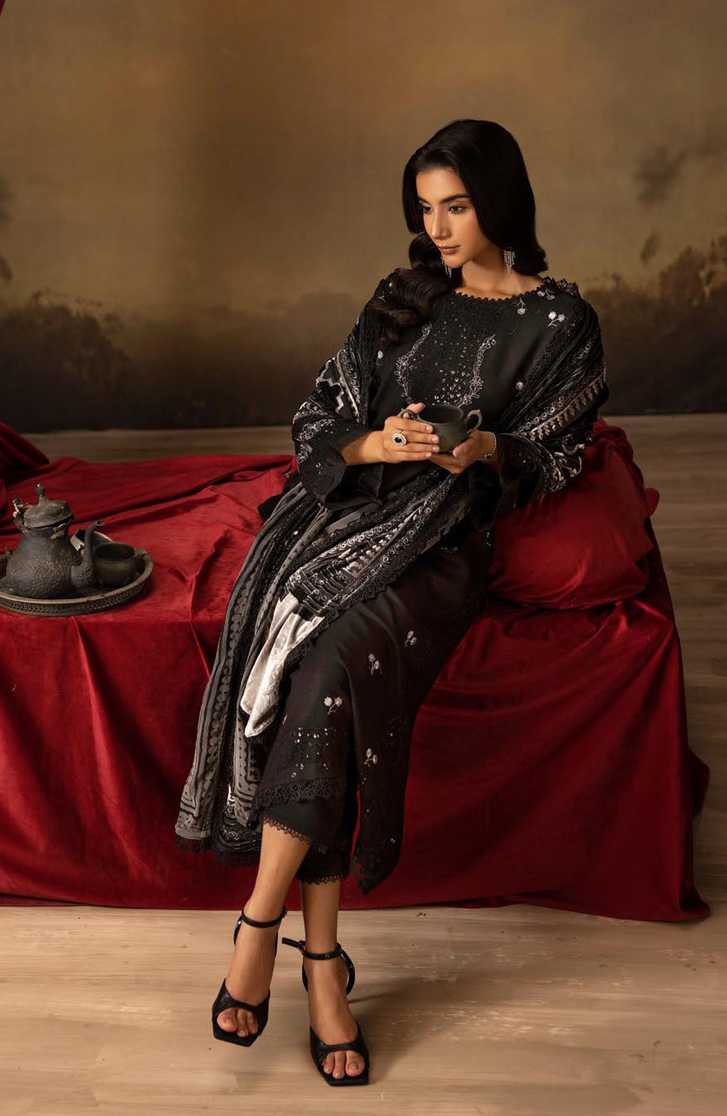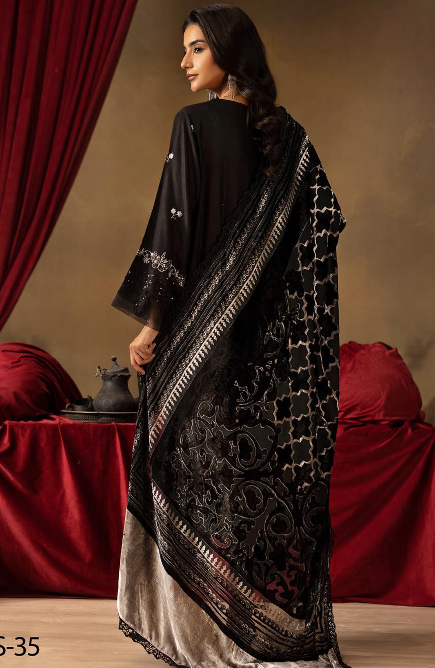 Dastan by Riaz Arts Embroidered Leather Peach Unstitched 3 Piece Suit - DS-35 - RA25DTN - Black - Winter Collection
