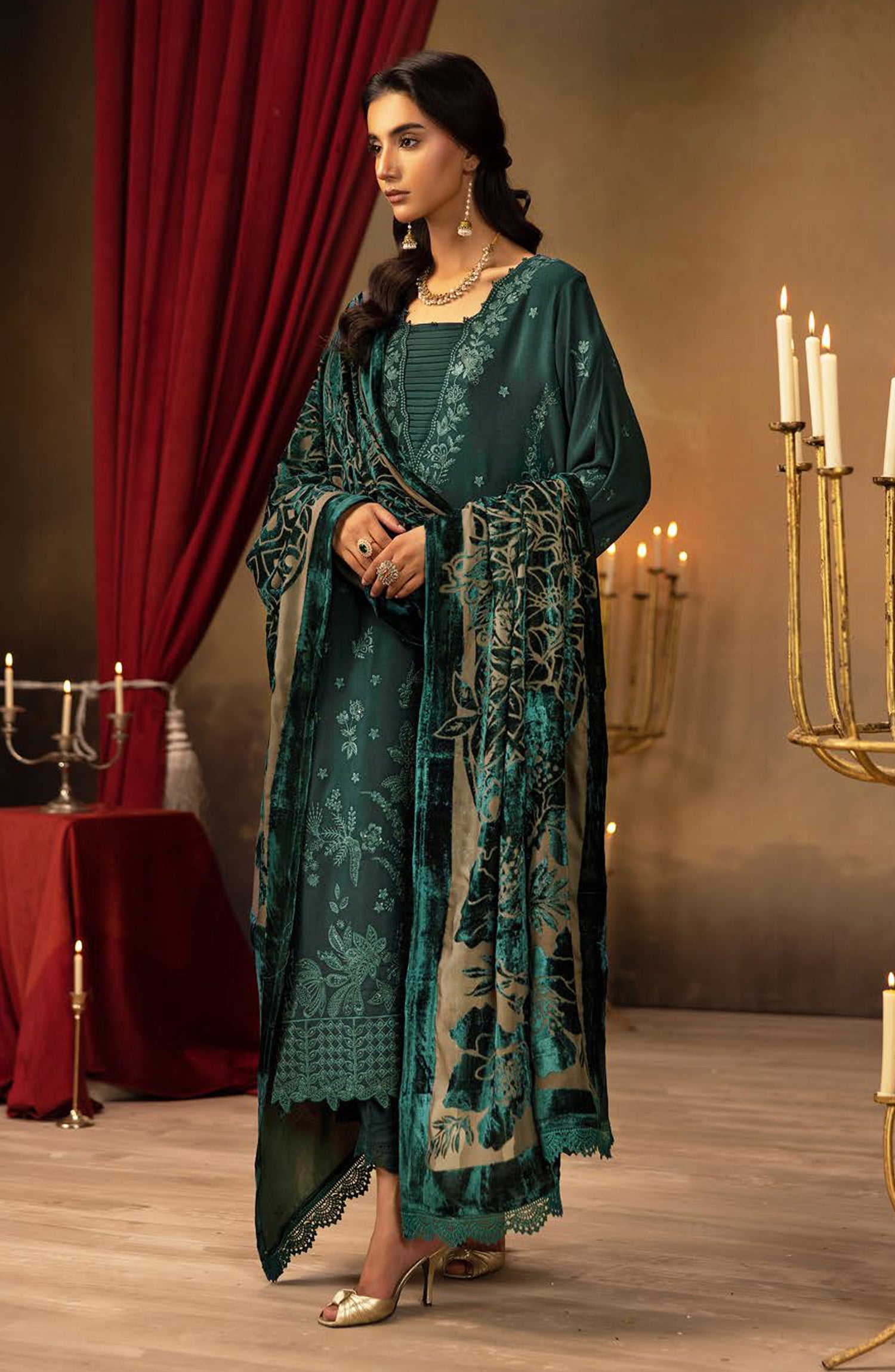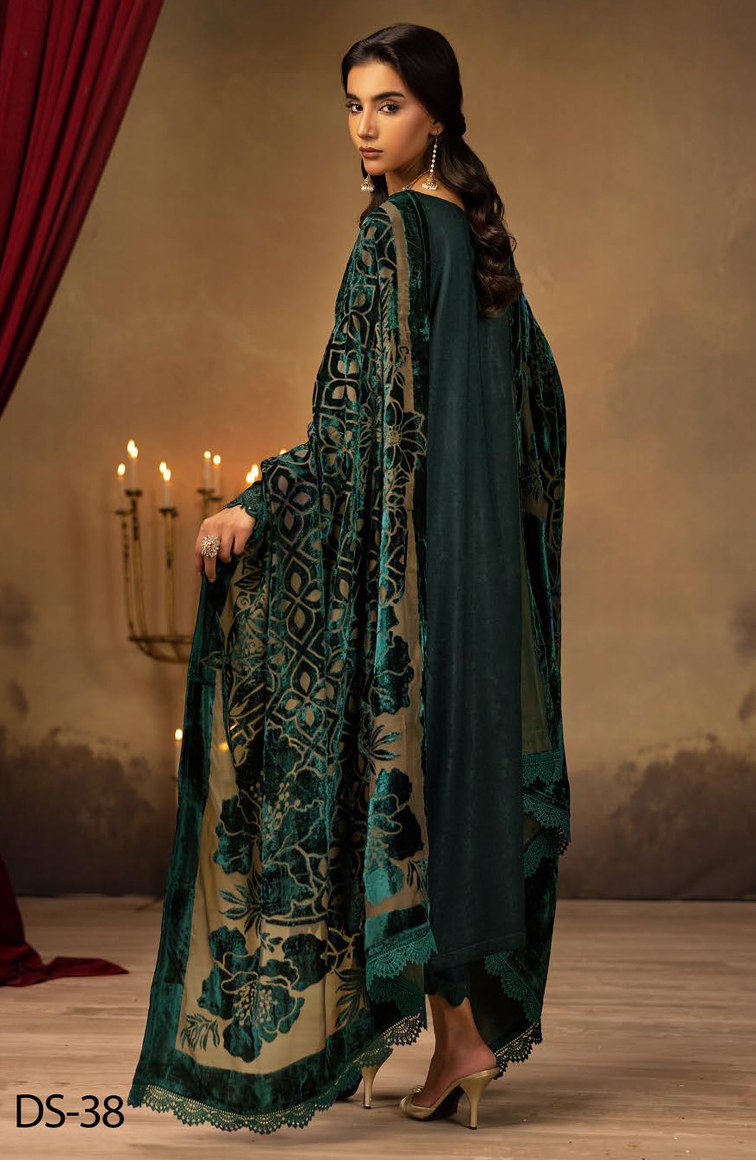 Dastan by Riaz Arts Embroidered Leather Peach Unstitched 3 Piece Suit - DS-38 - RA25DTN - Green - Winter Collection
