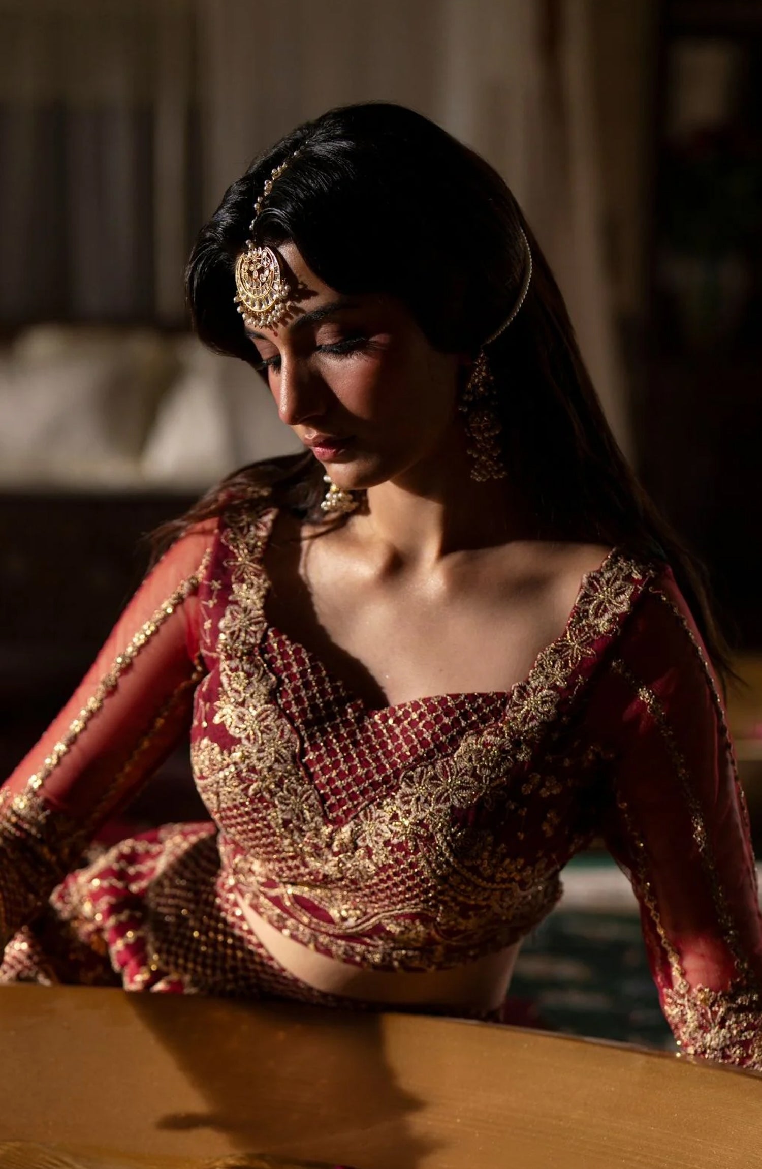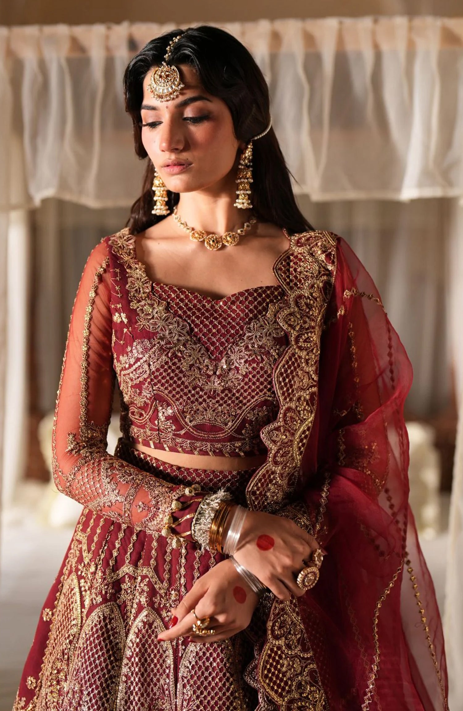 Resham and sequin embroidered net sleeves