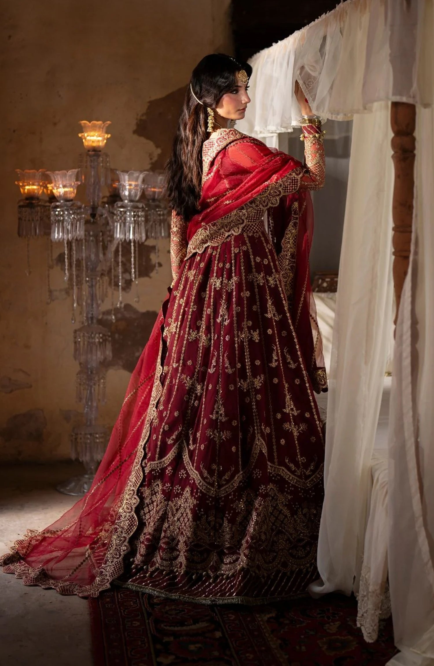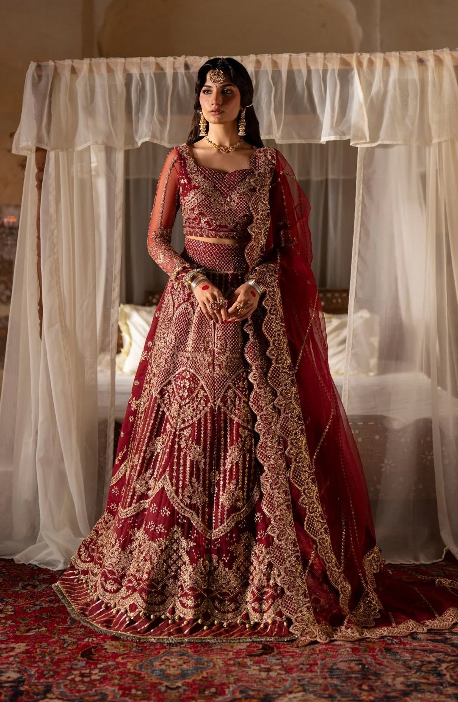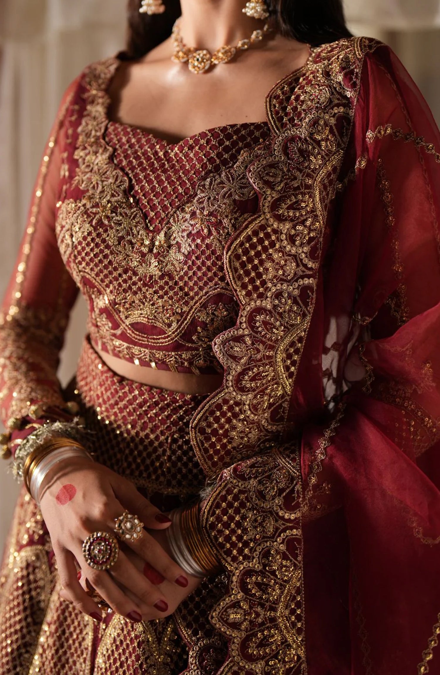 Resham and sequin embroidered organza dupatta pallu border