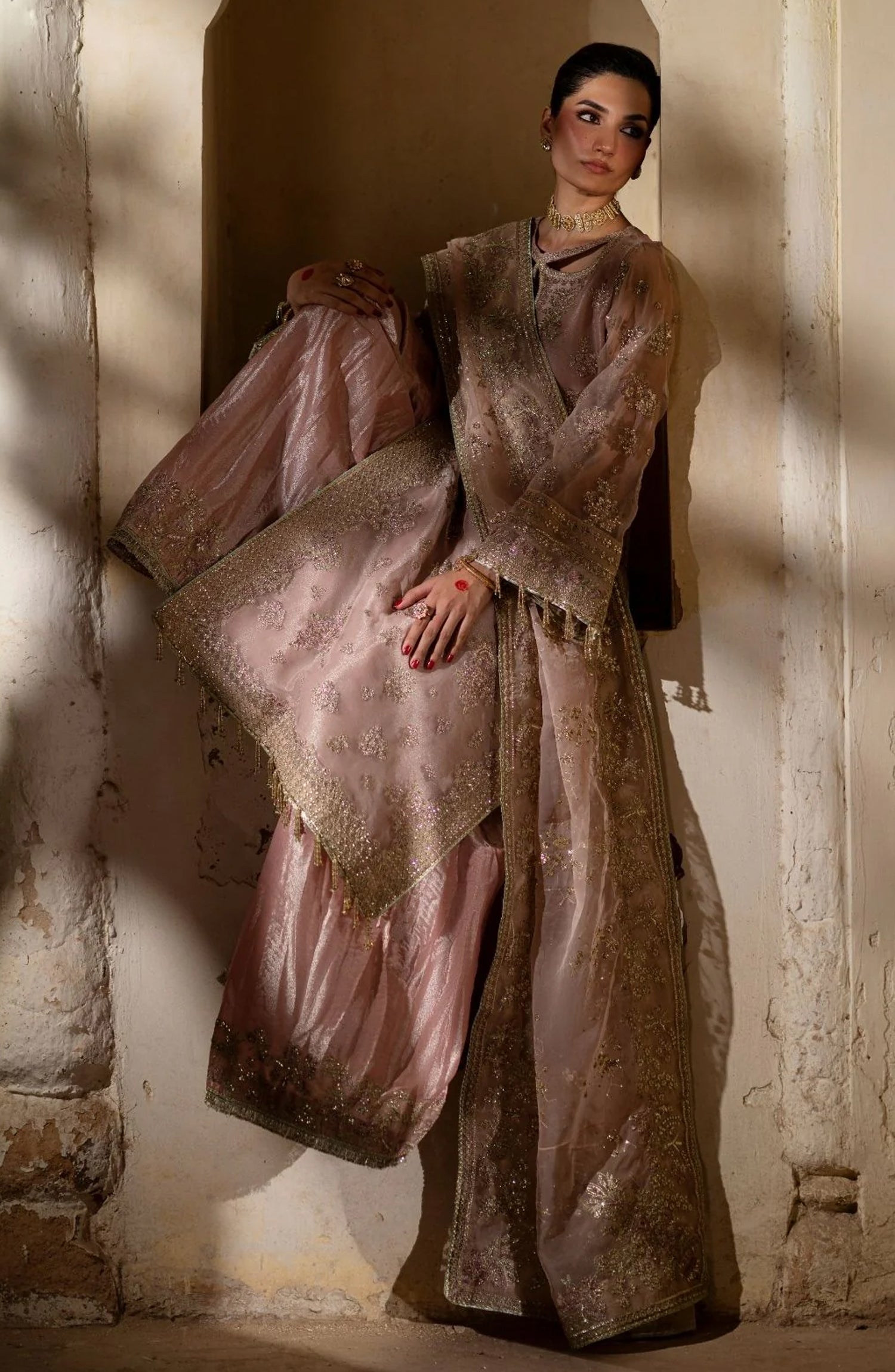 Zari tissue shrara fabric (5 yard)