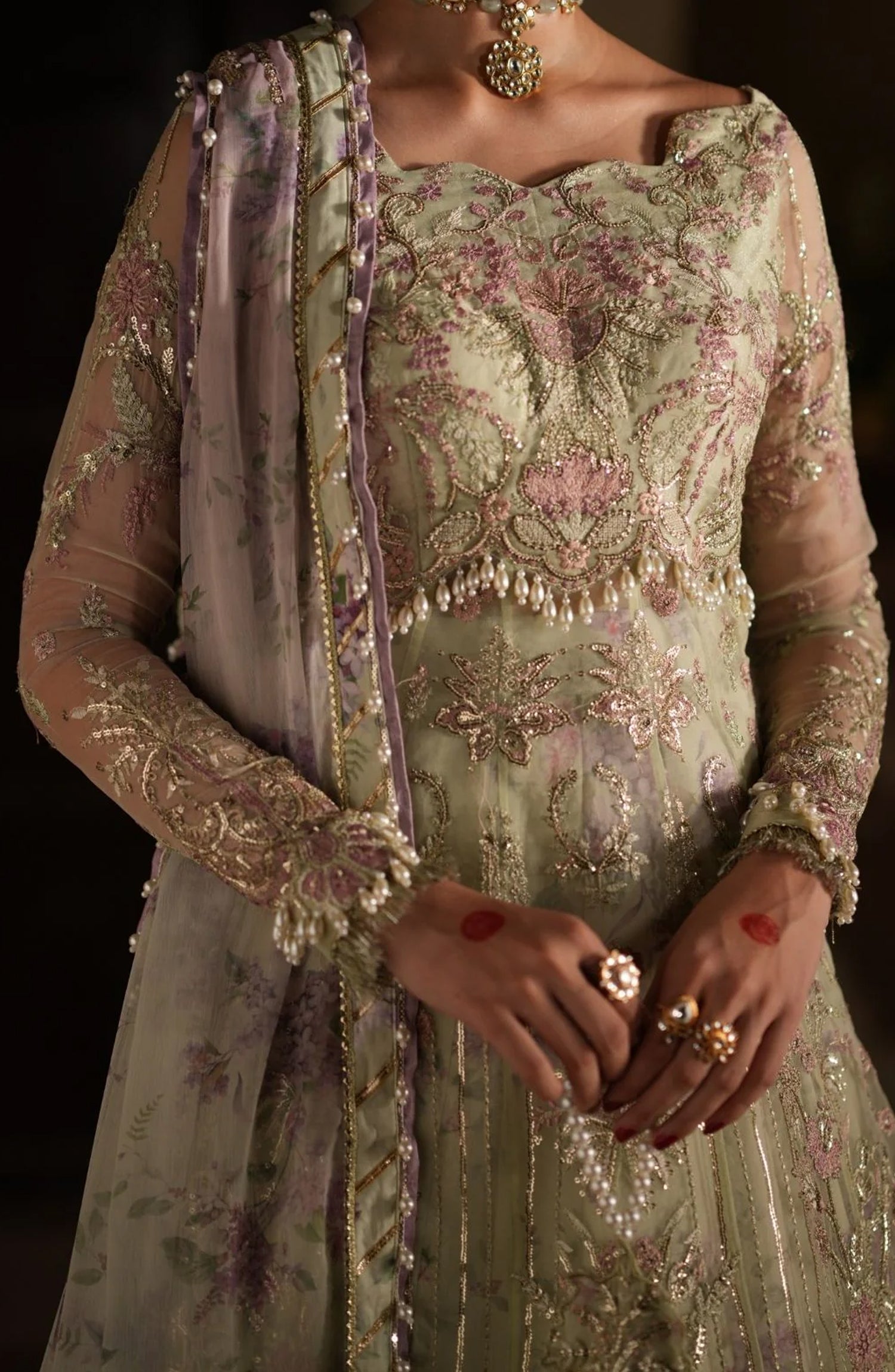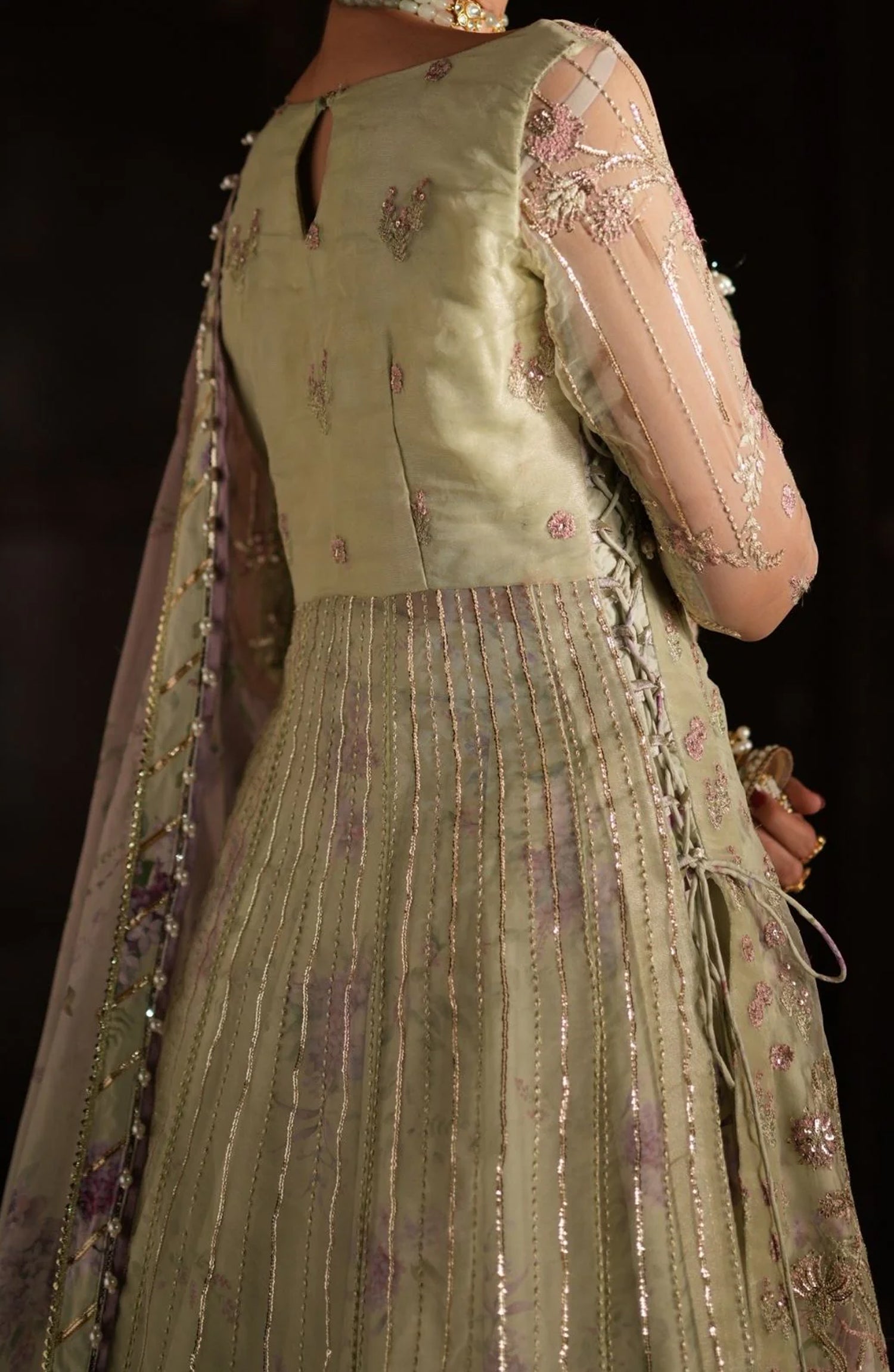 Resham and sequin embroidered organza sleeves