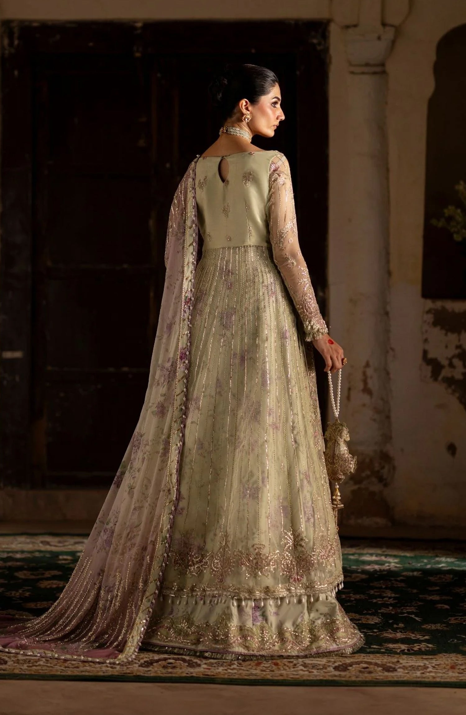 Resham and sequin embroidered organza back yoke
