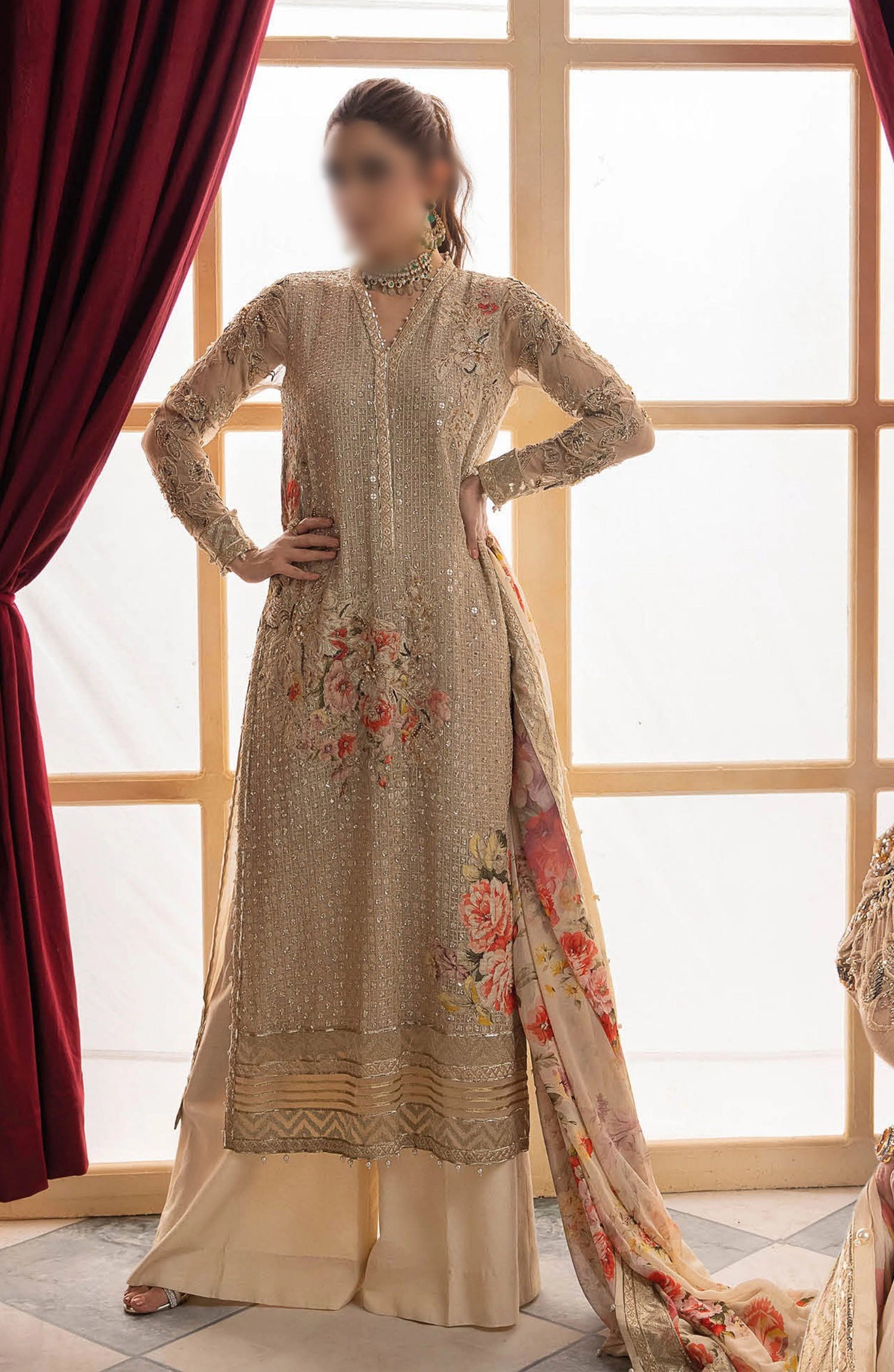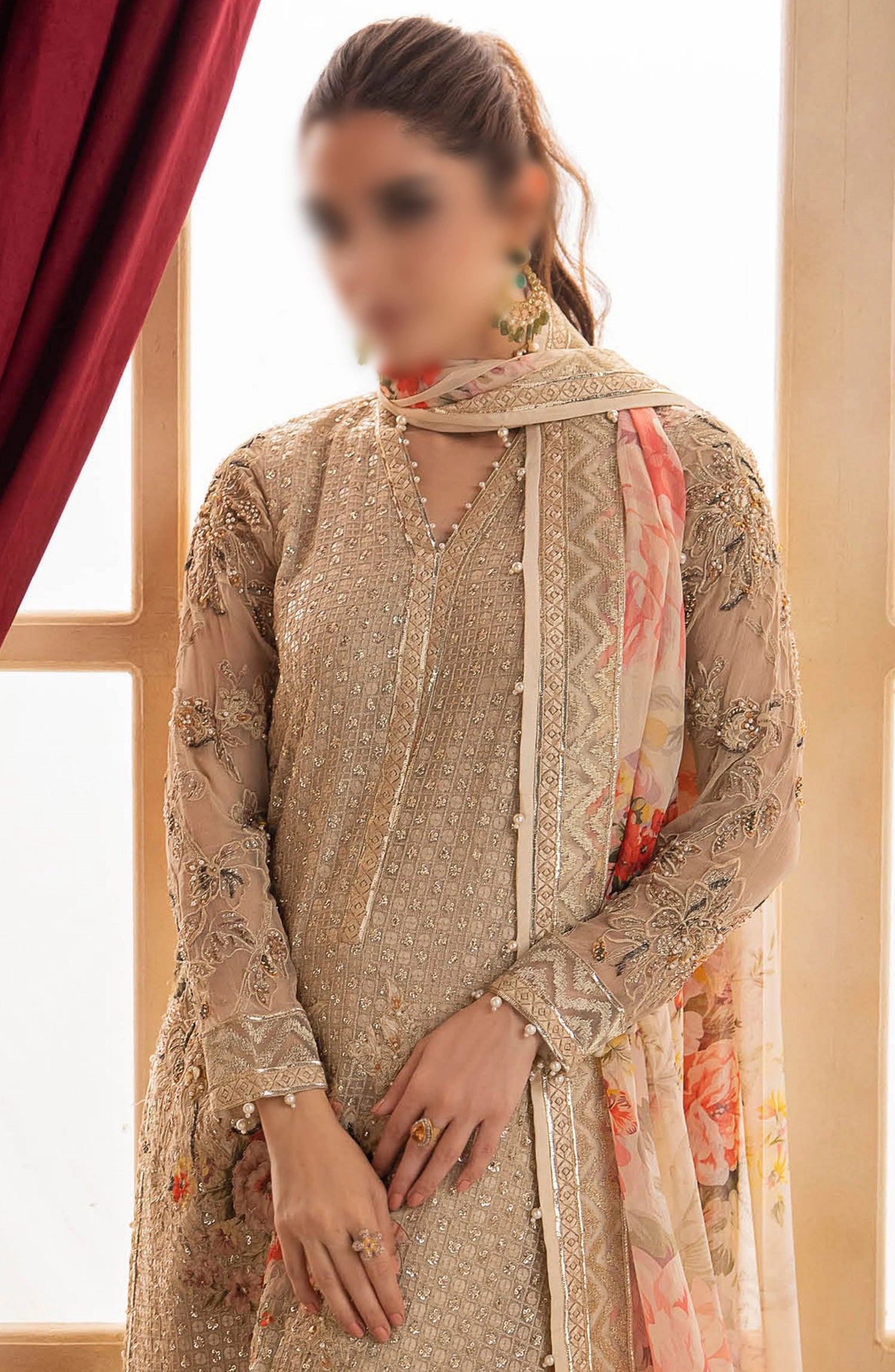 Amna Khadija Embroidered Crinkle Chiffon Unstitched 3 Piece Suit - D-06 - AM25LXC - Brown - Formals Collection