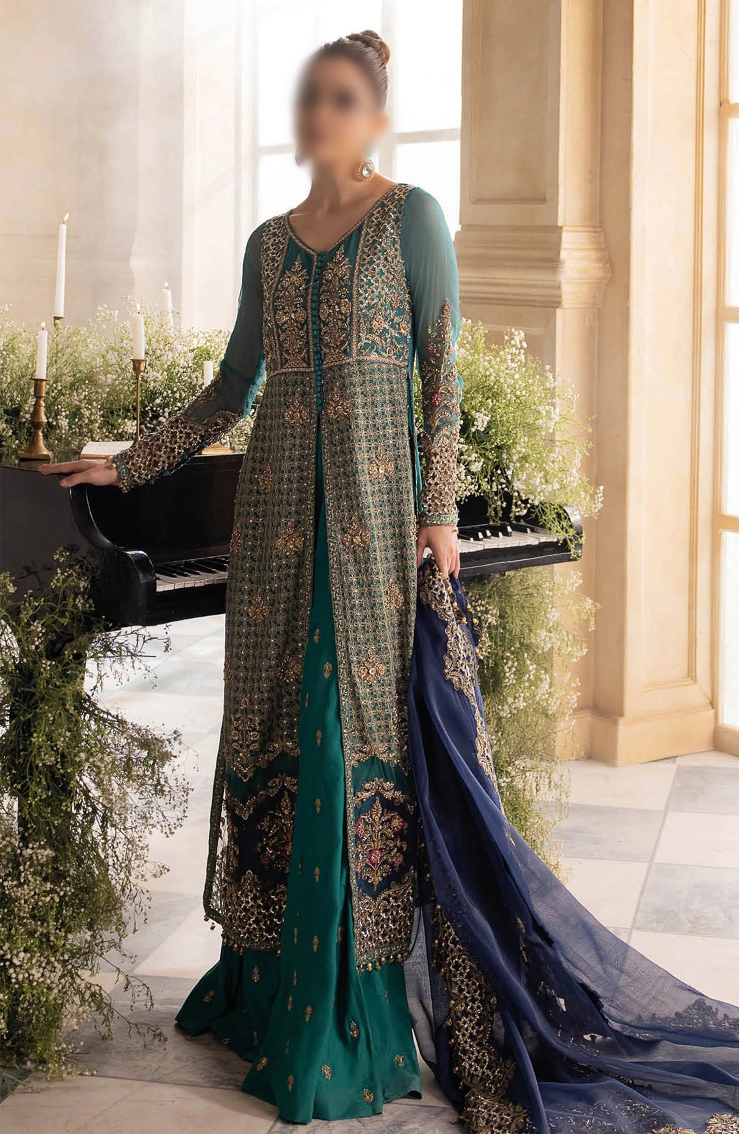 Amna Khadija Embroidered Crinkle Chiffon Unstitched 3 Piece Suit - D-03 - AM25LXC - Blue - Formals Collection