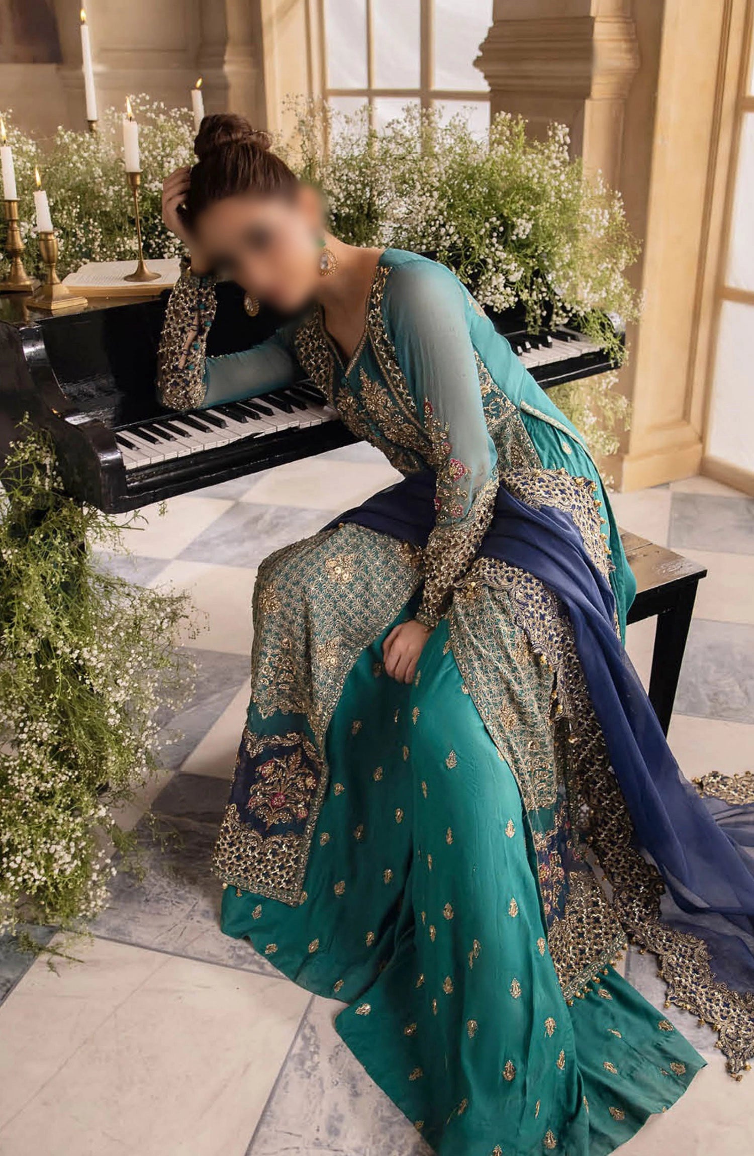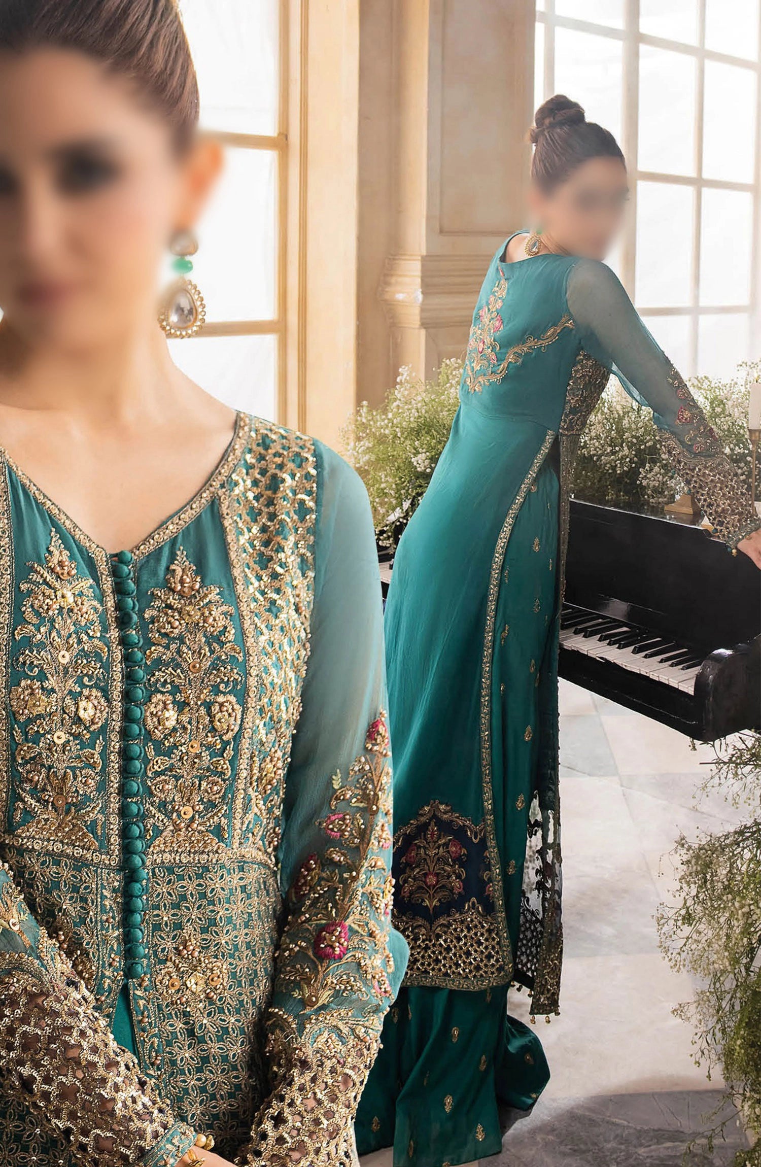 Amna Khadija Embroidered Crinkle Chiffon Unstitched 3 Piece Suit - D-02 - AM25LXC - Green - Formals Collection