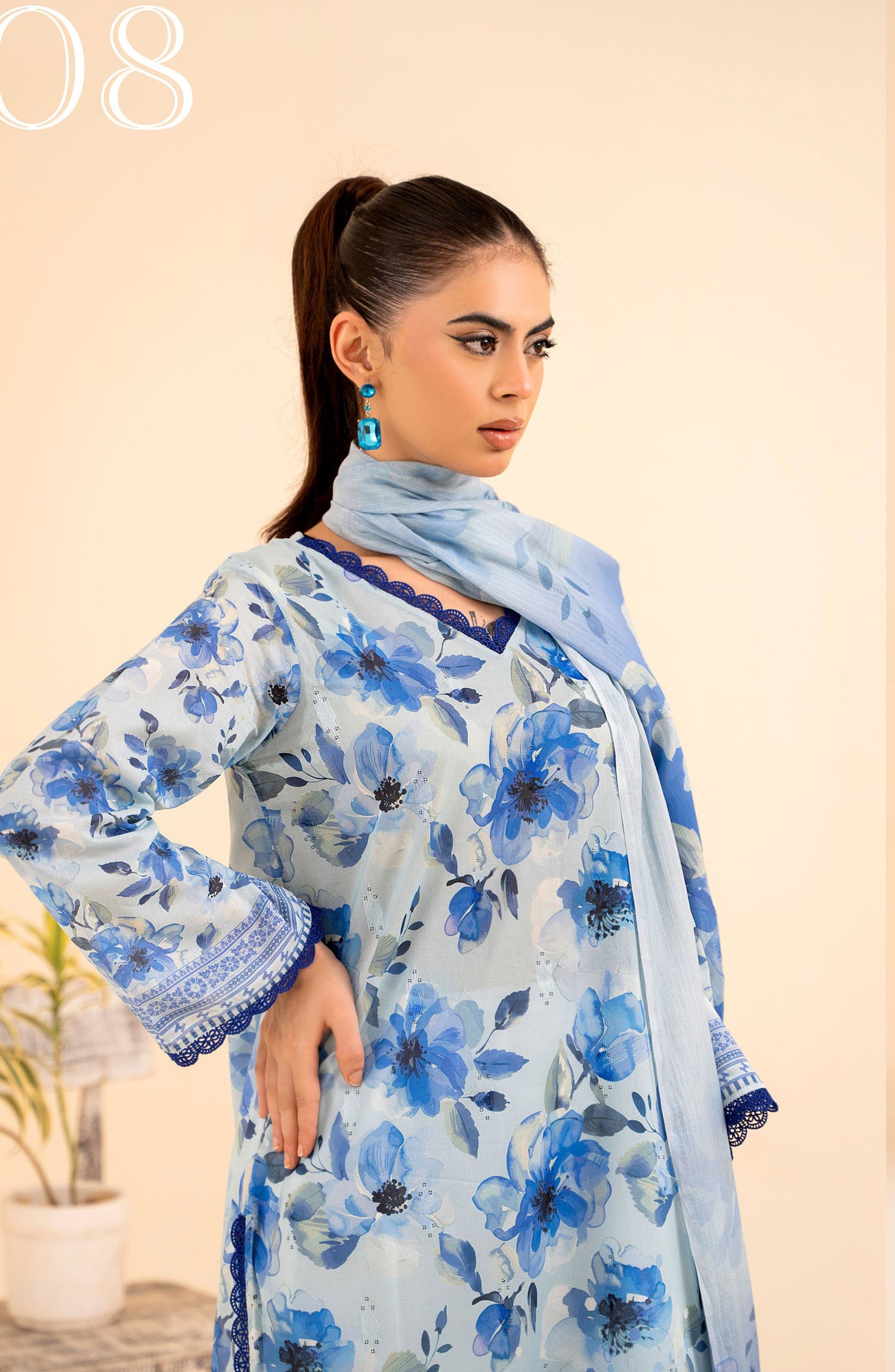 Unstitched Digital Printed Chikankari Fabric For Shirt