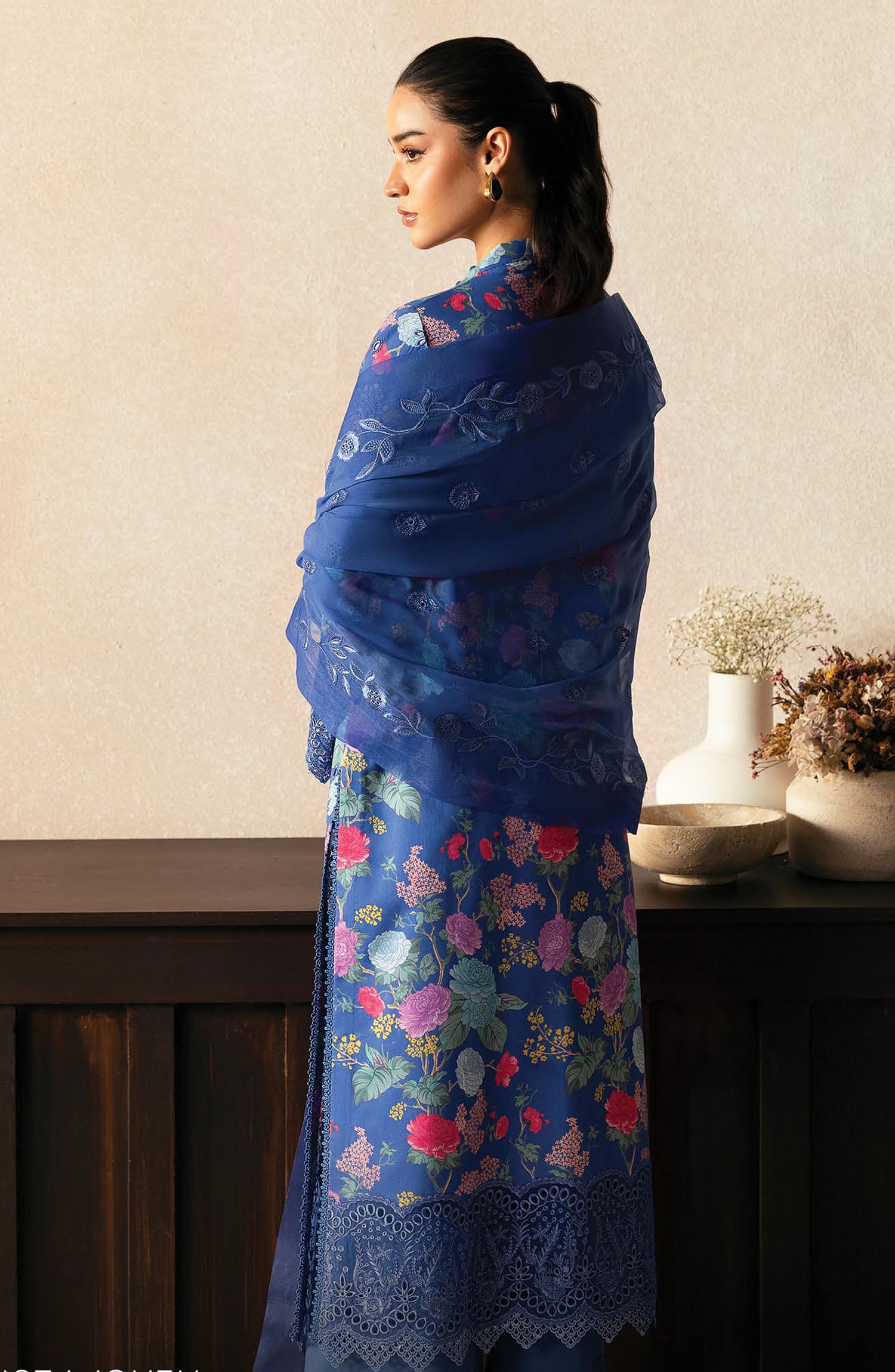 Daybreak by Afrozeh Embroidered Lawn Unstitched 3 Piece Suit - AL-25-V11-01 Mist Woven - Blue - Summer Collection
