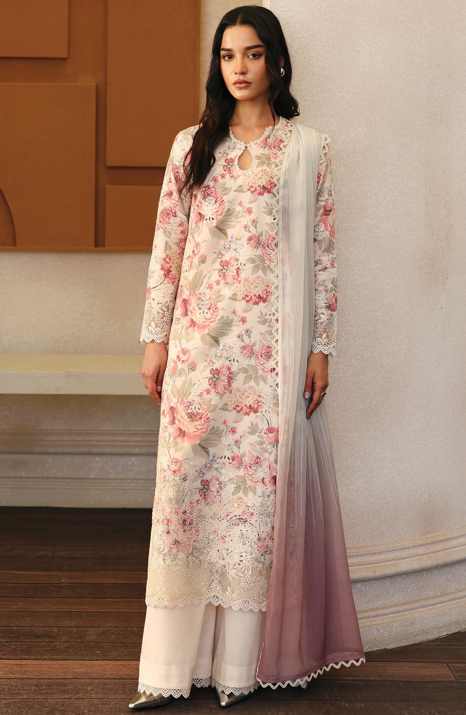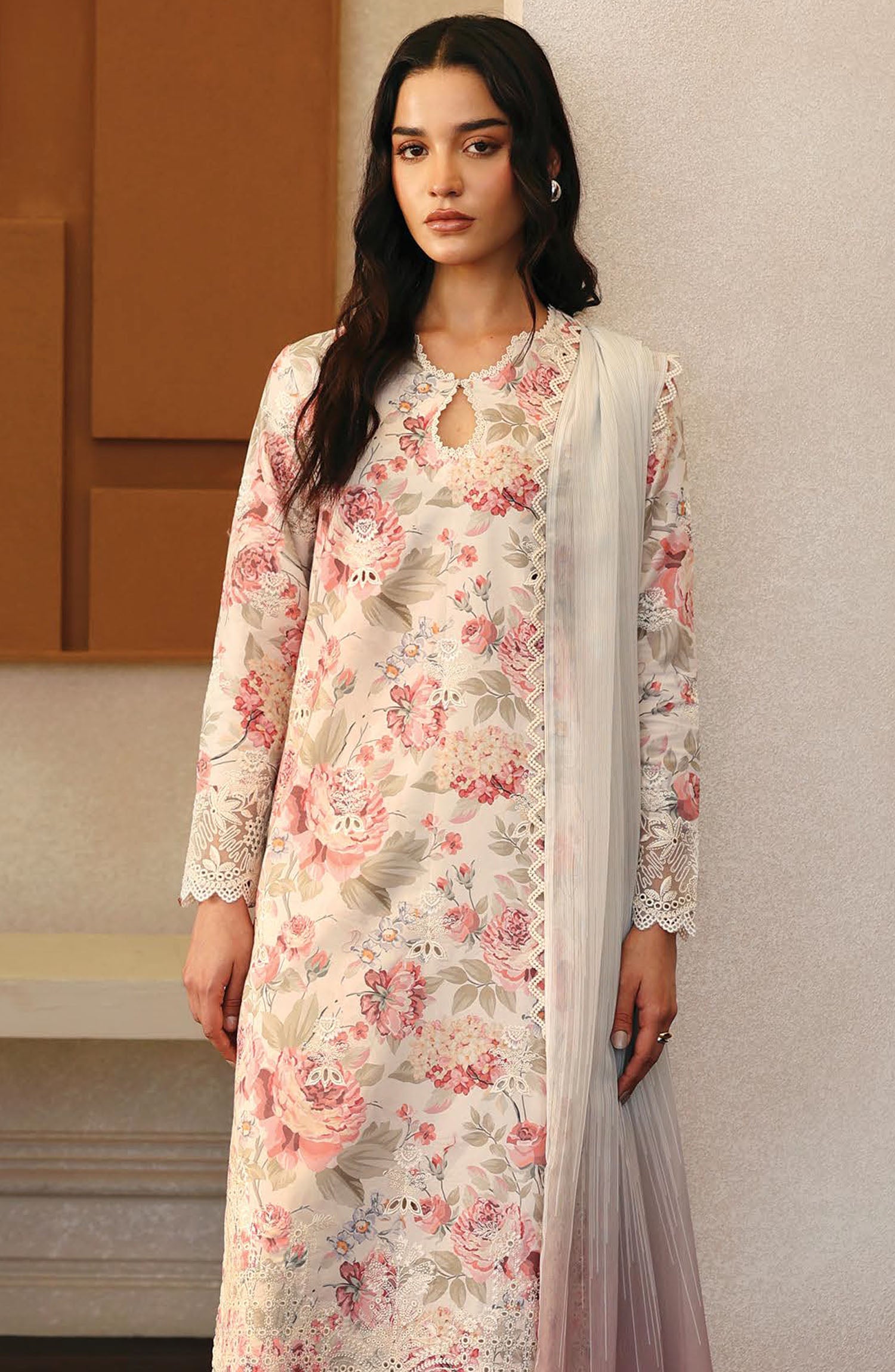 Home Daybreak by Afrozeh Embroidered Lawn Unstitched 3 Piece Suit - AL-25-V11-03 Horizon Faded - White - Summer Collection