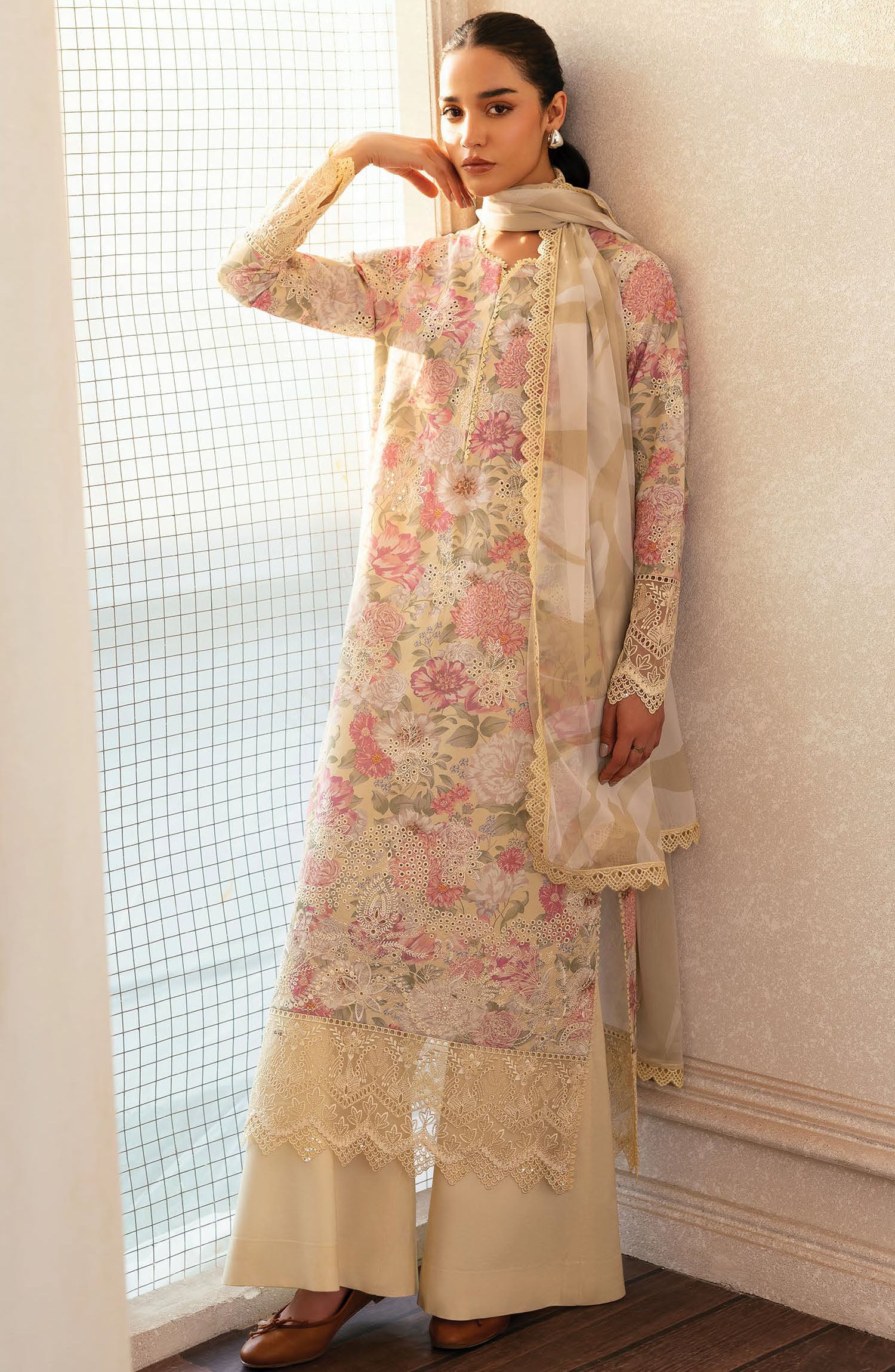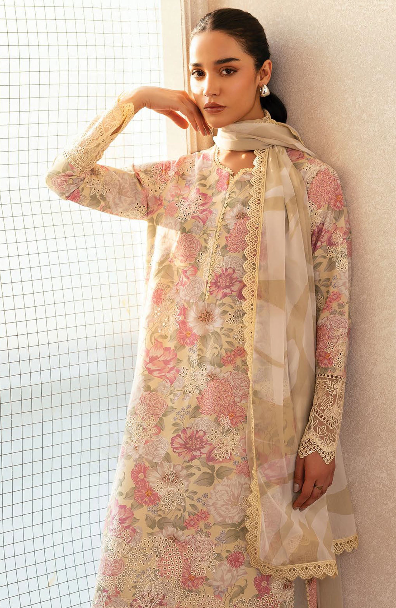 Home Daybreak by Afrozeh Embroidered Lawn Unstitched 3 Piece Suit - AL-25-V11-04 Glow Streaked - White - Summer Collection