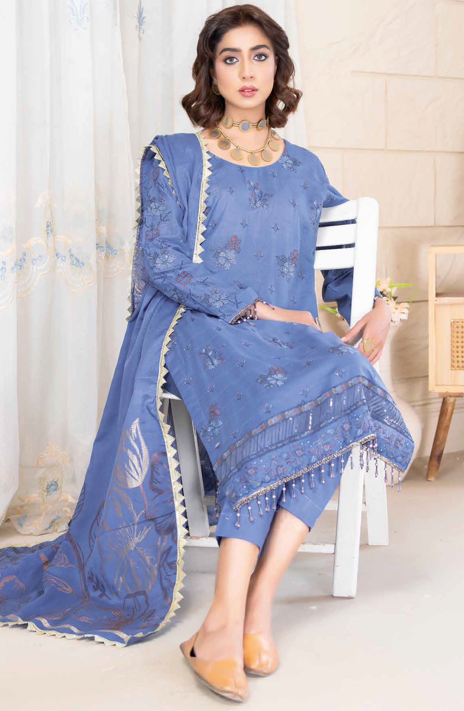 Deeda Zaib by Riaz Arts Embroidered Lawn Unstitched 3 Piece Suit - D-03 - RA25DDZ - Blue - Summer Collection