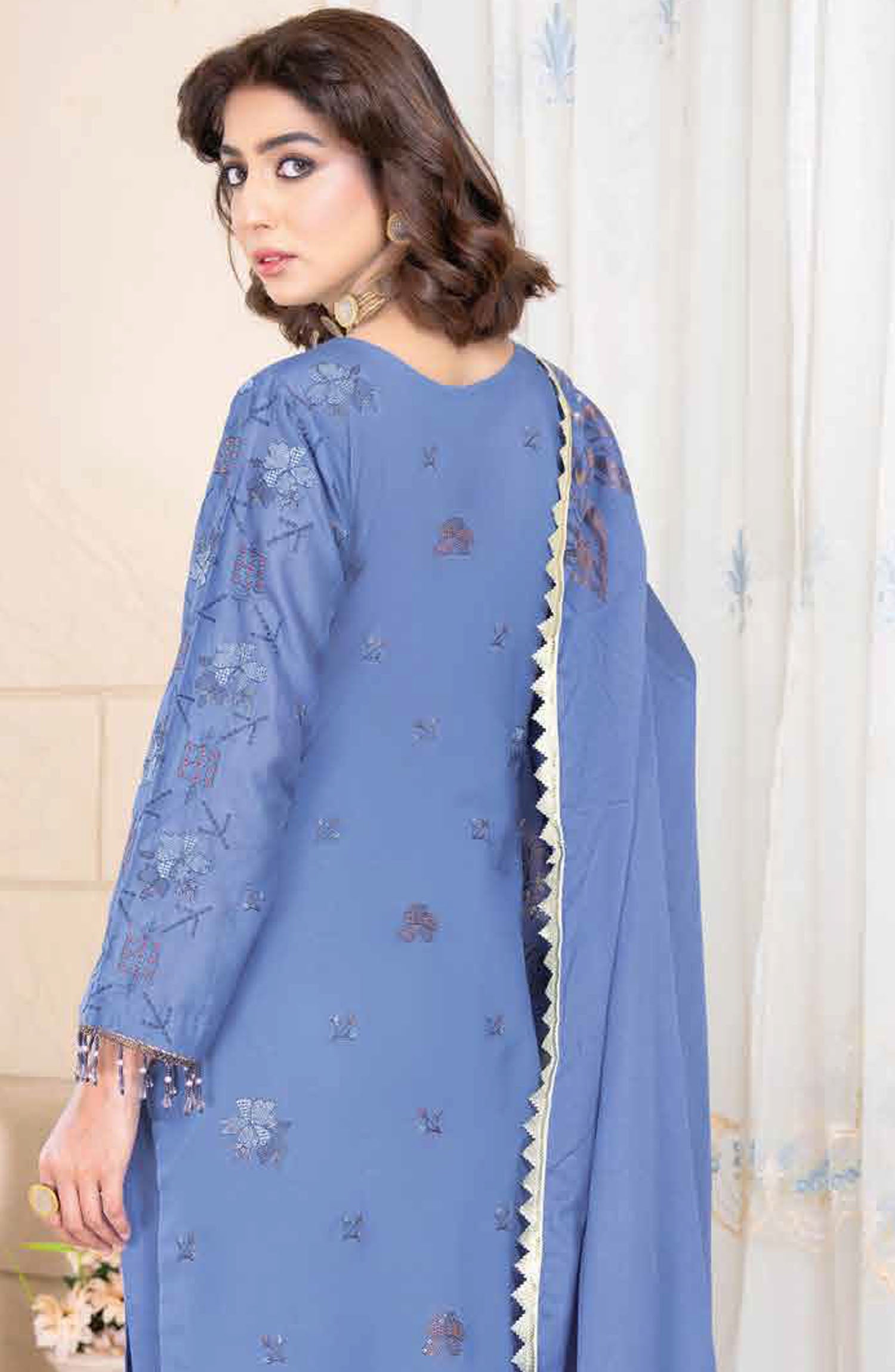 Sadabahar Signature Embroidered Khaddar Stitched 3 Piece Suit - Design-03 - SBD25SNA - Blue - Winter Collection