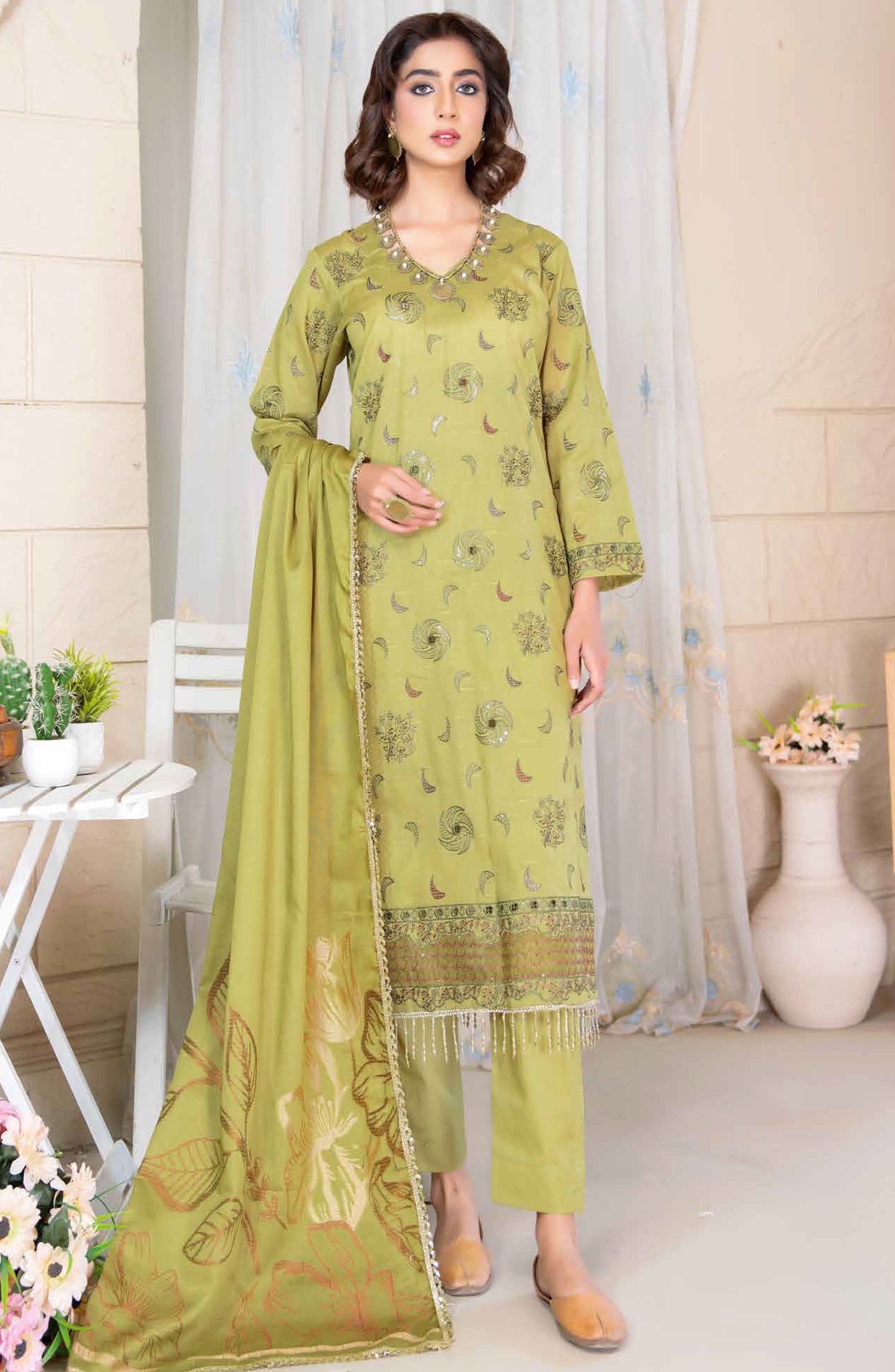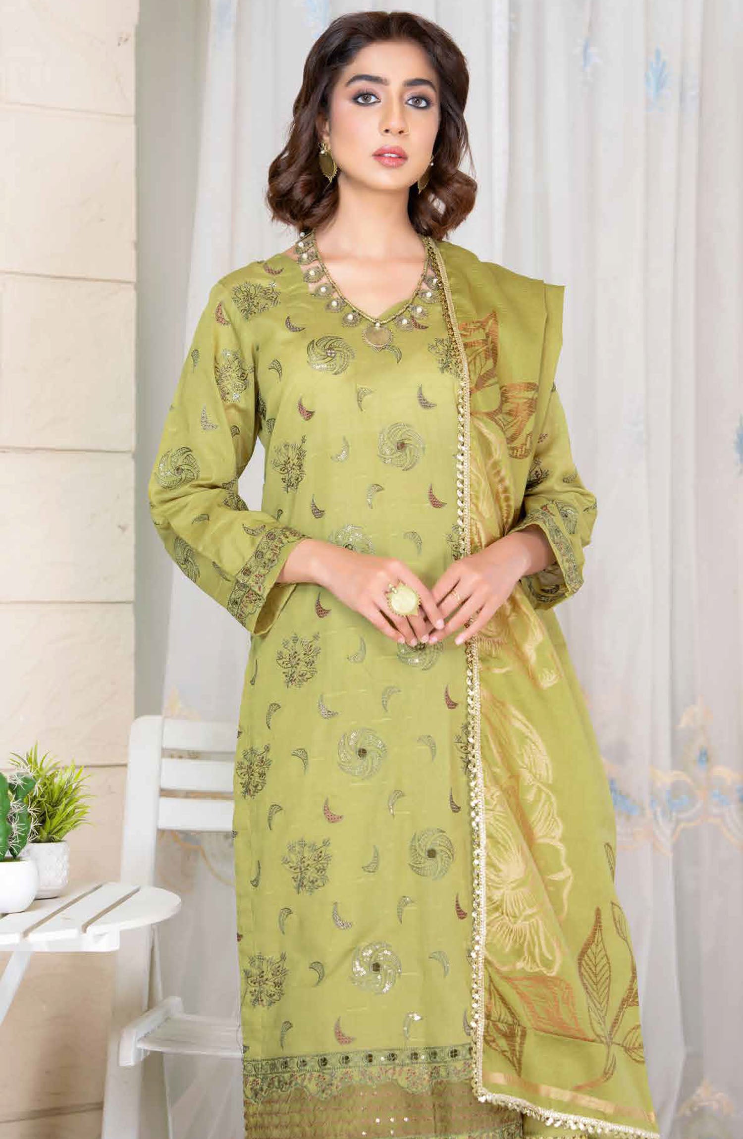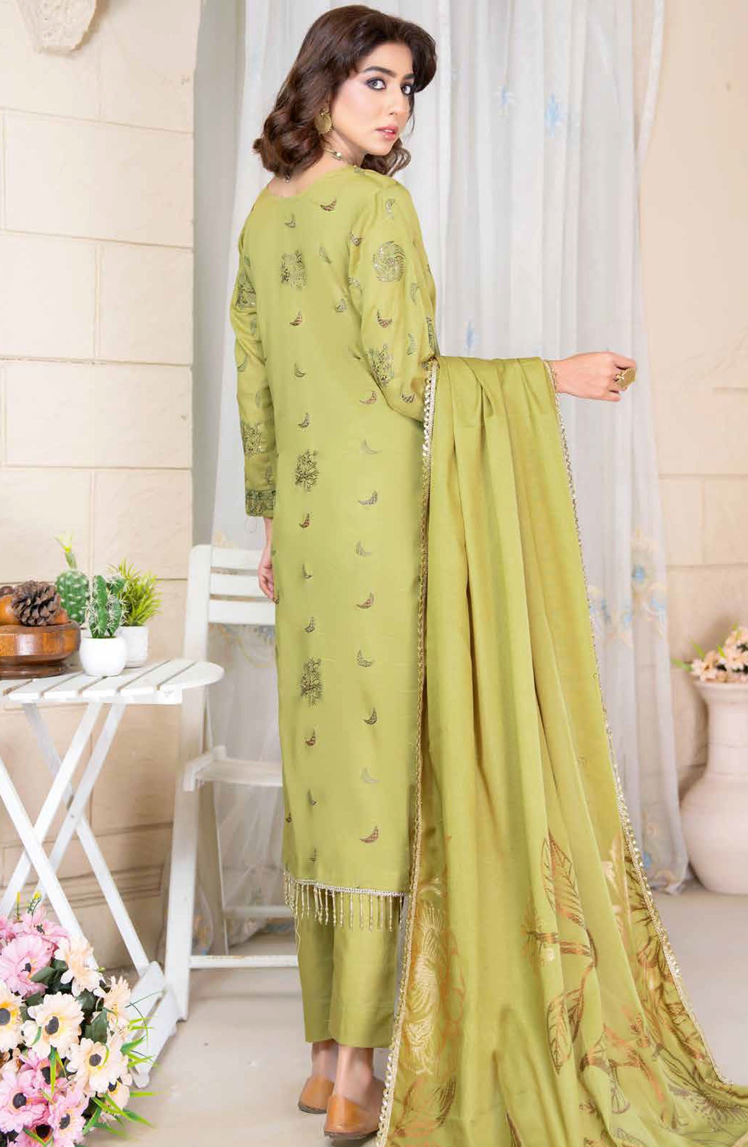 Rua by Casual Lite Embroidered Premium Linen Stitched 3 Piece Suit - D-01 Olive Mustard Hue - CL25RU - Dhani - Winter Collection