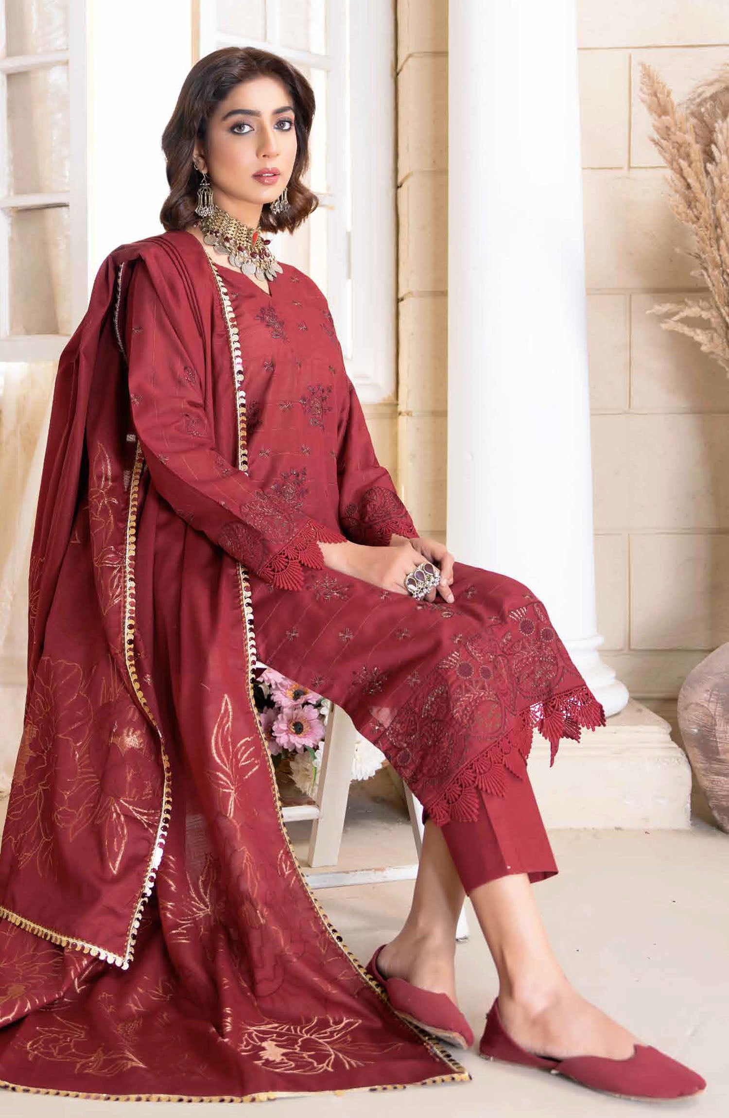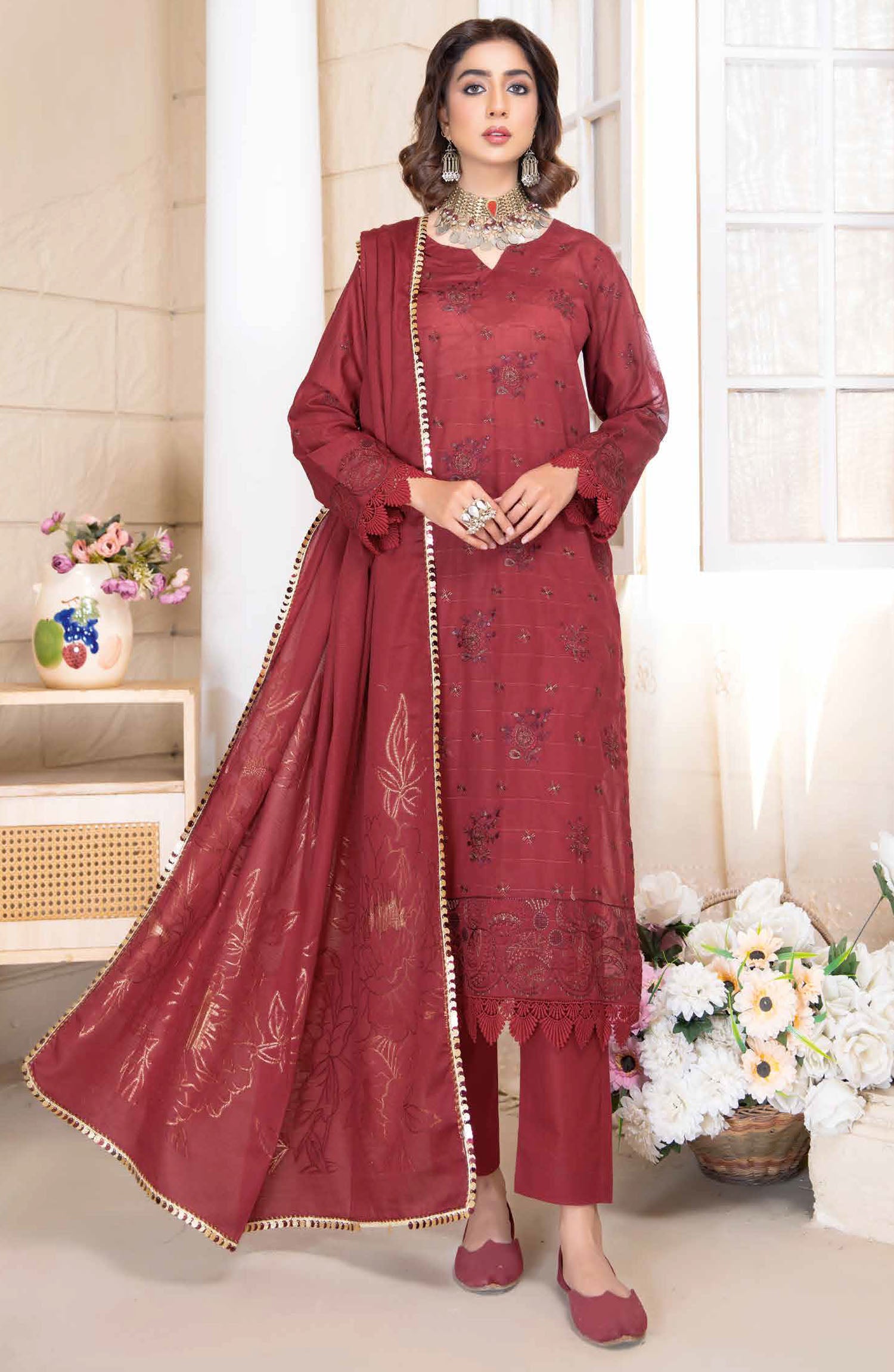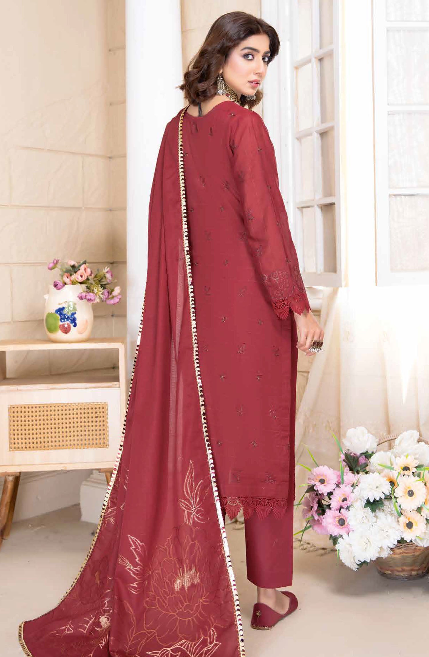 Deeda Zaib by Riaz Arts Embroidered Lawn Unstitched 3 Piece Suit - D-06 - RA25DDZ - Red - Summer Collection