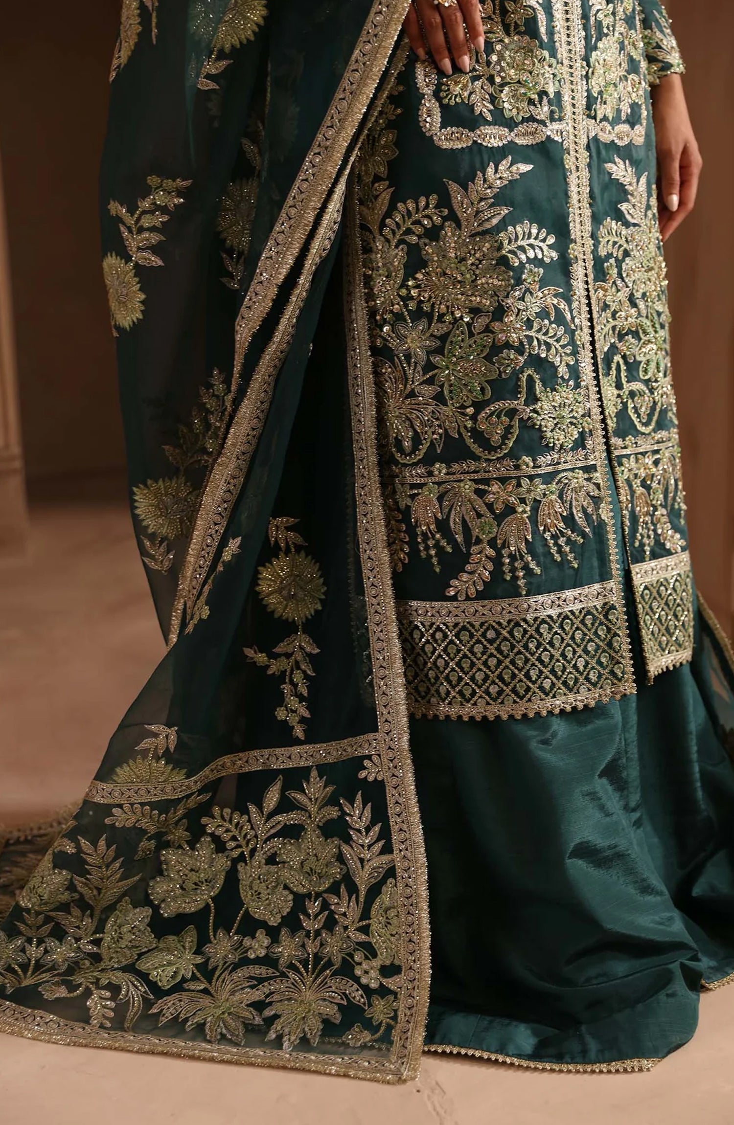 Organza Embroidered Hand Embellished Sleeves: 26"