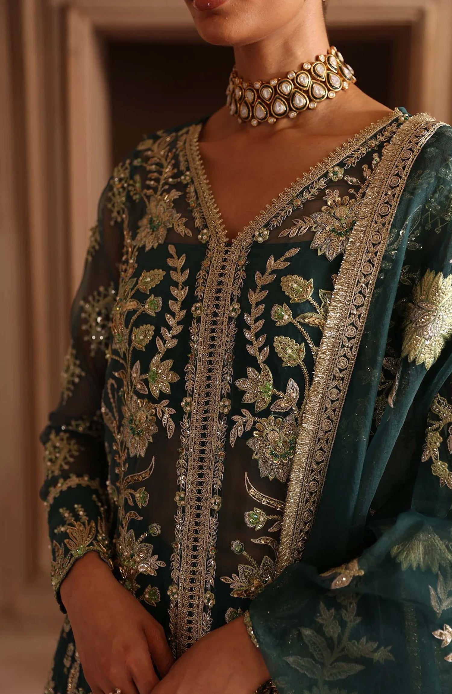 Organza Embroidered Hand Embellished Front: 30"