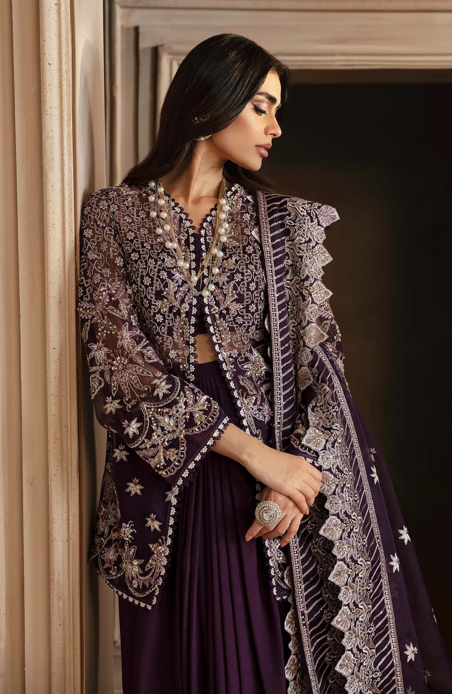 Organza Embroidered Hand Embellished Front: 30"