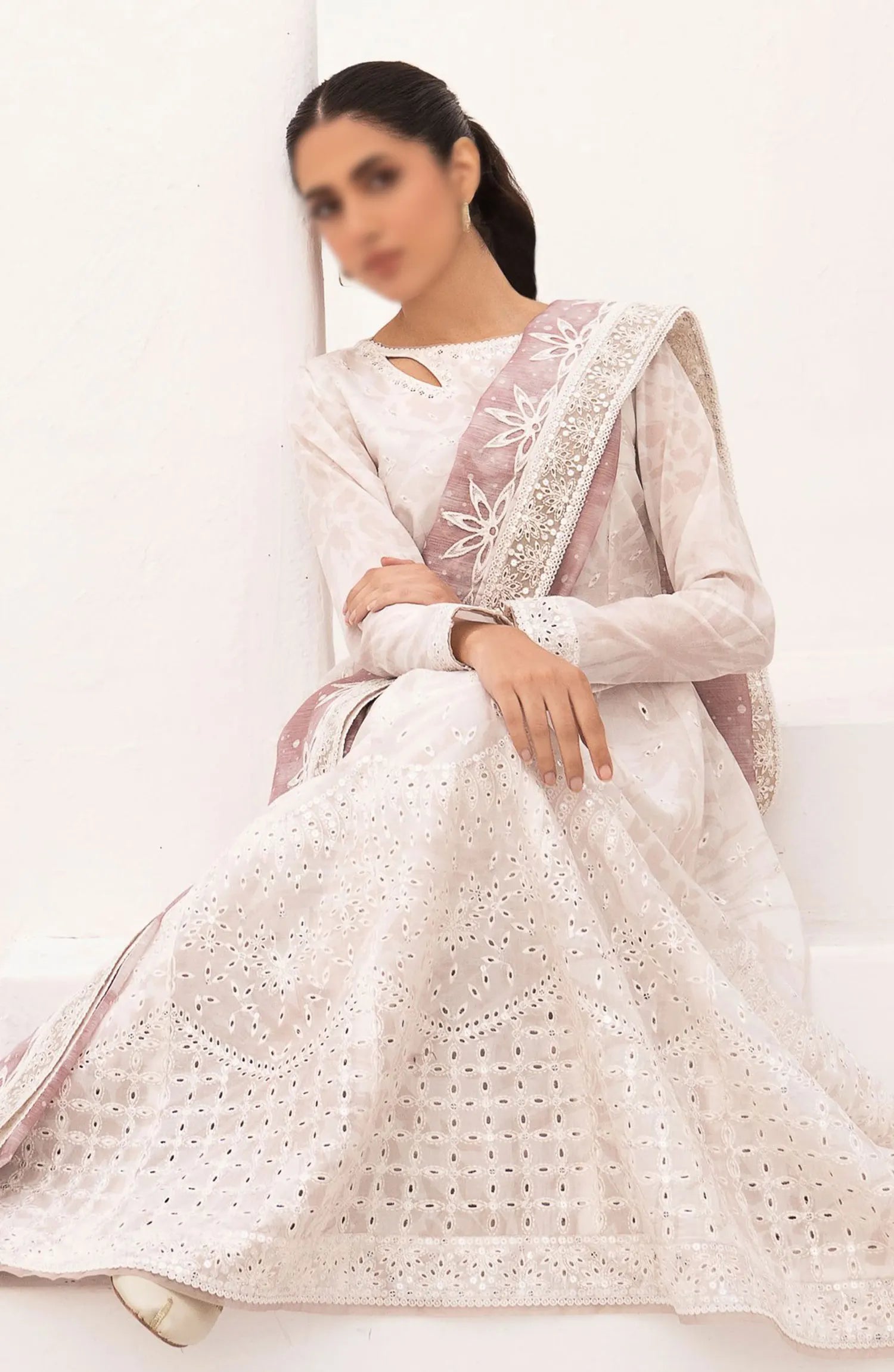 Delia By Jazmin Lawn Collection 2024 has been styled in the image for photography and illustrative purposes.