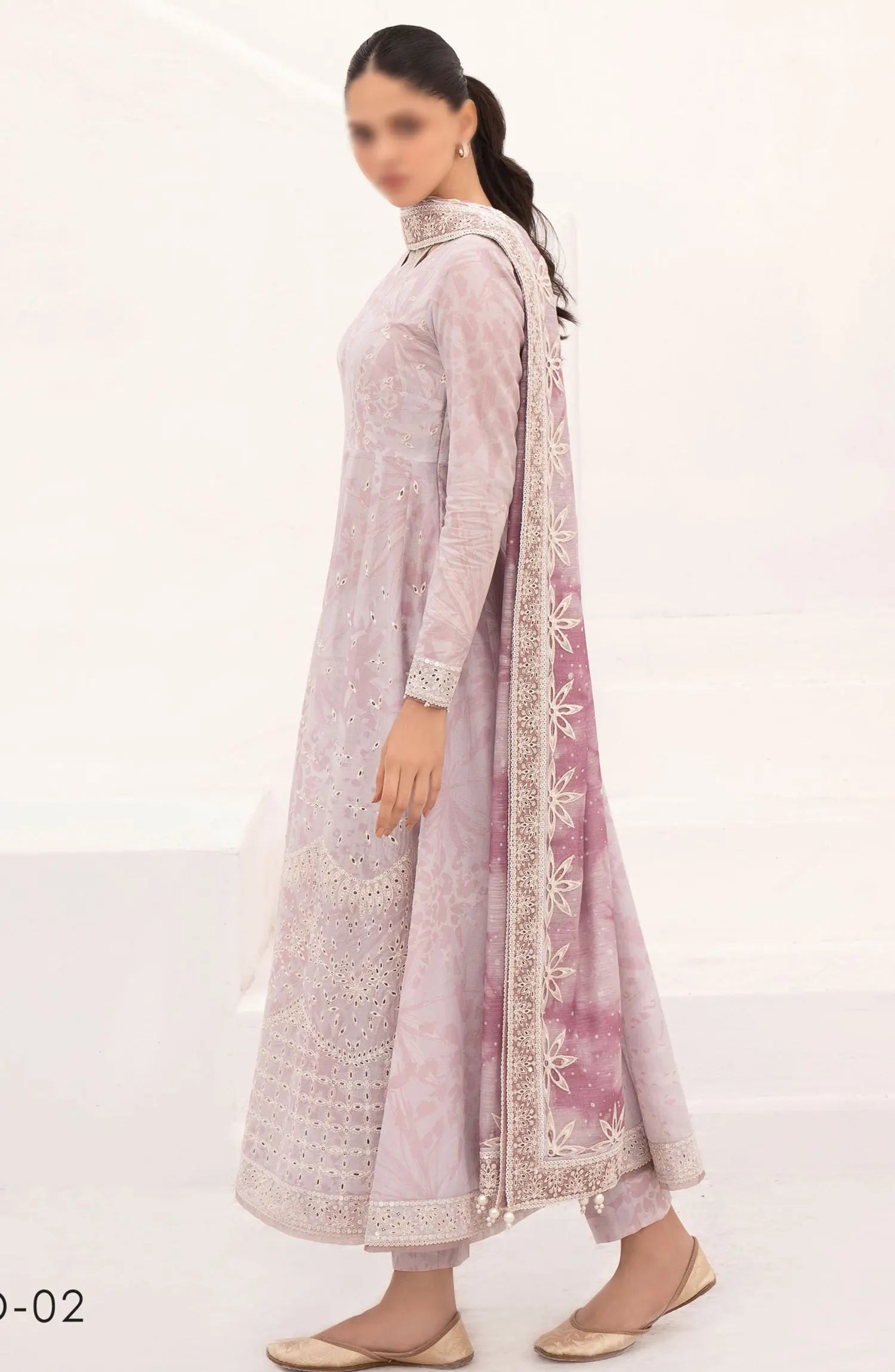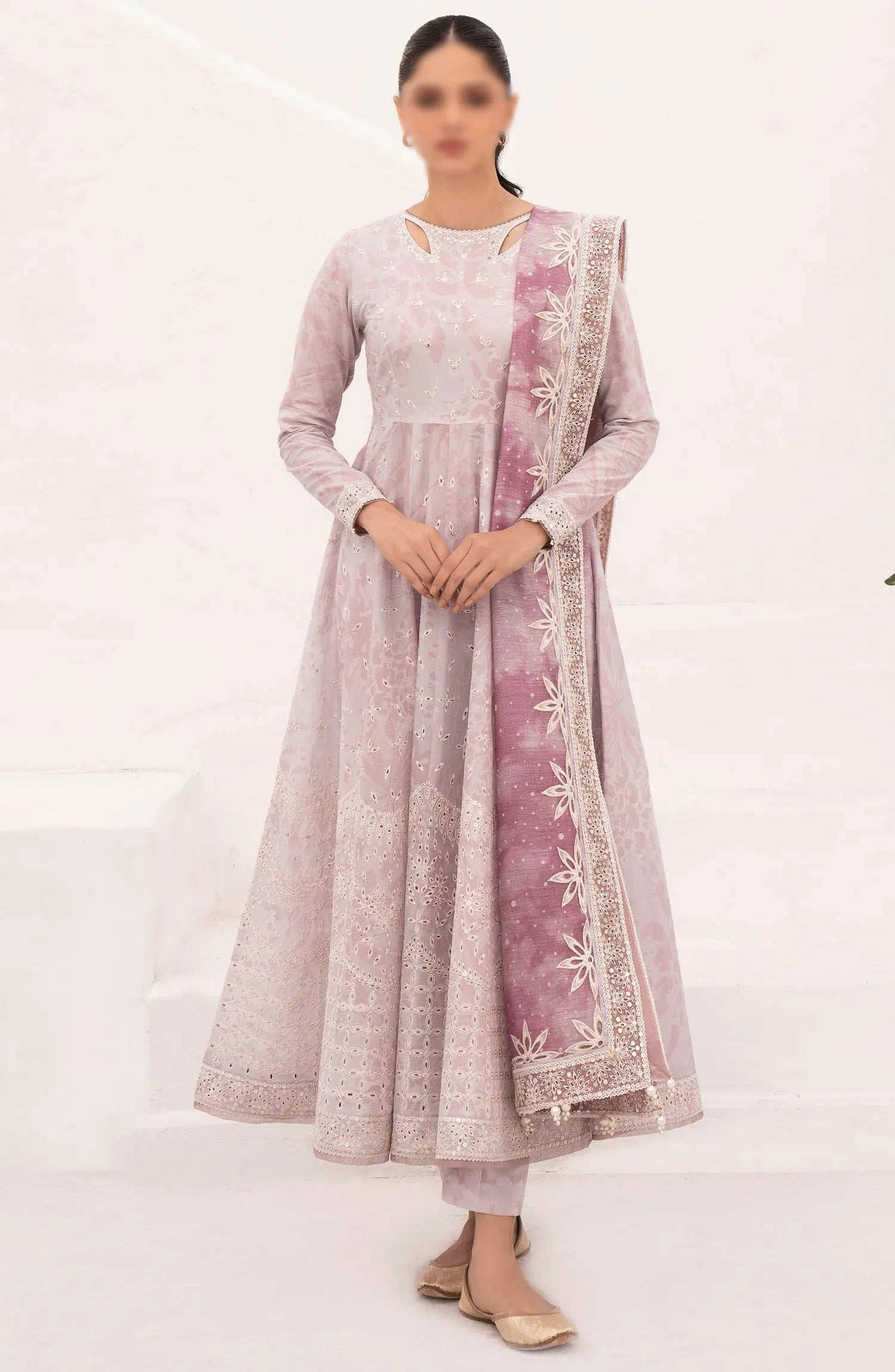 Afrozeh Day Break Embroidered Lawn Unstitched 3 Piece Suit - FWU-0014-3PO-Dove Mist - AF26DB - Purple - Luxury Summer Collection