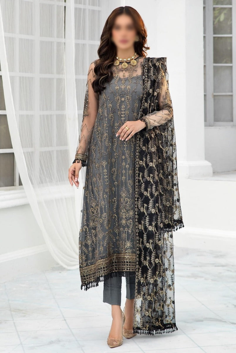 DeLuxury Unstitched Formal Edit by Zarif has been styled in the image for photography and illustrative purposes.
