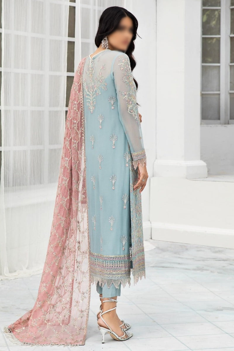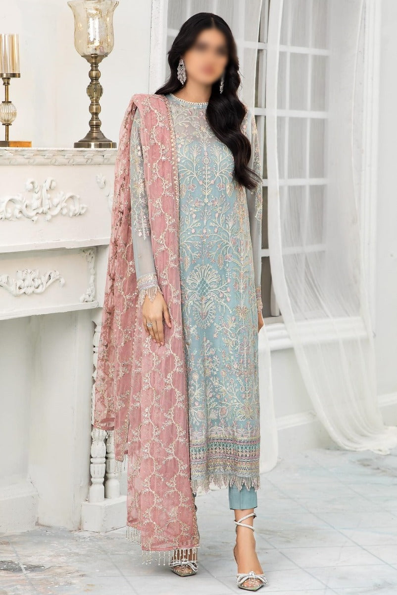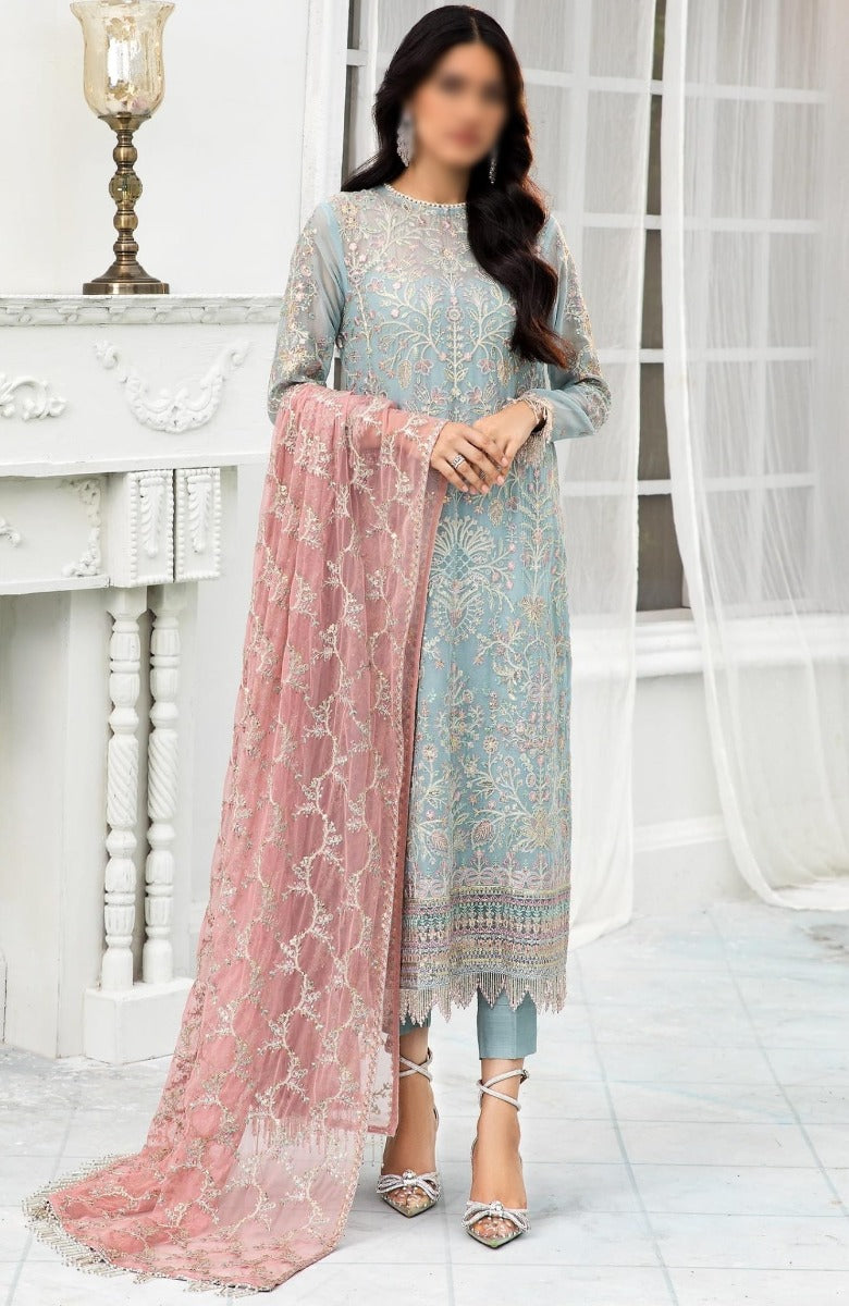 DeLuxury Unstitched Formal Edit by Zarif has been styled in the image for photography and illustrative purposes.