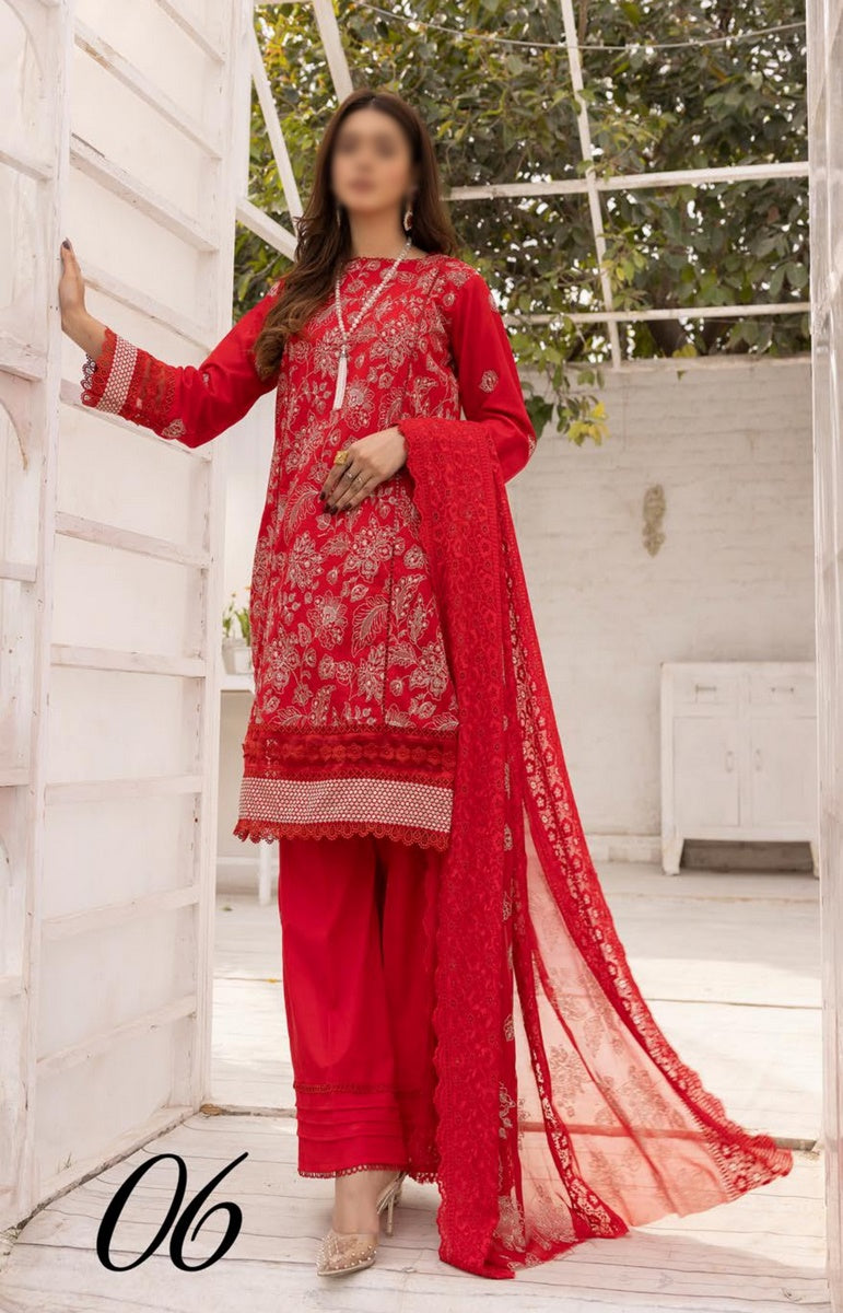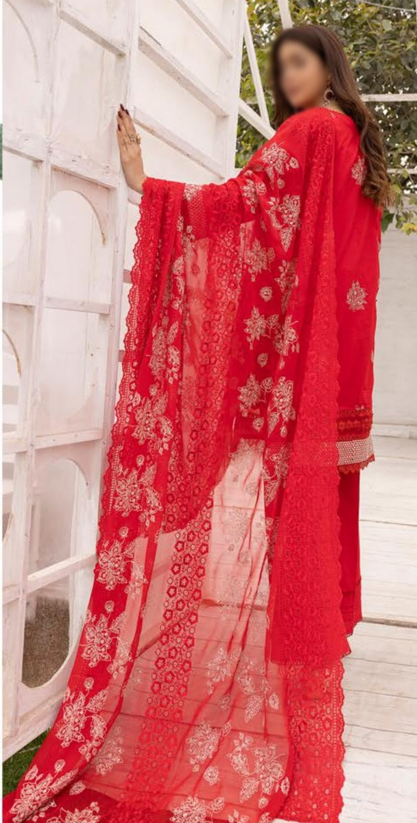 The standard style comes as a long-sleeved kameez with dupatta and trouser/shalwar.