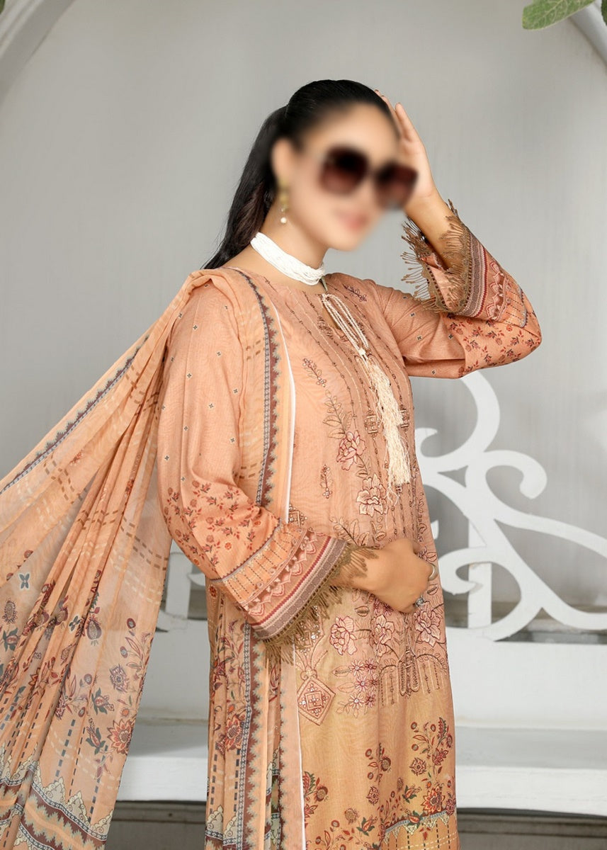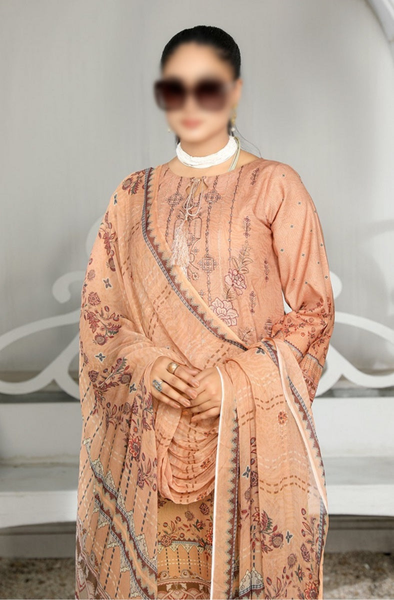 3 Piece Digital Printed and Embroidered Premium Lawn Shirt with Fancy Dupatta and Dyed Plain Trouser