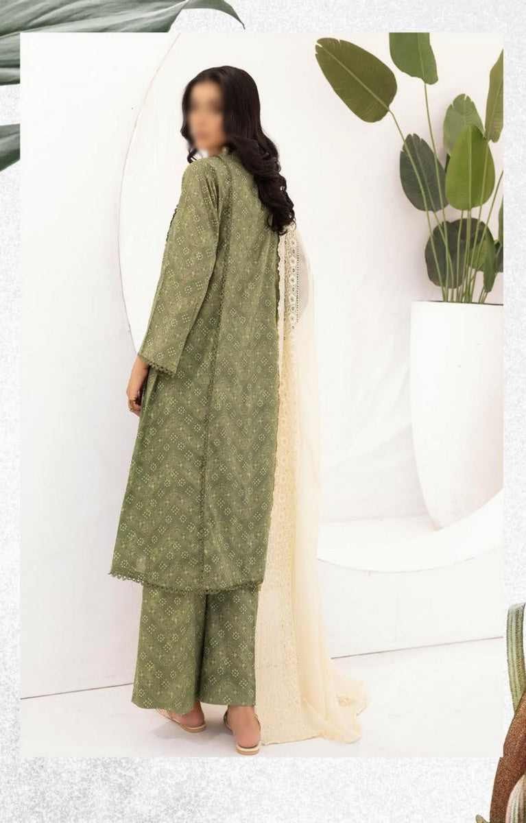 The standard style comes as a long-sleeved kameez with dupatta and trouser/shawlar.